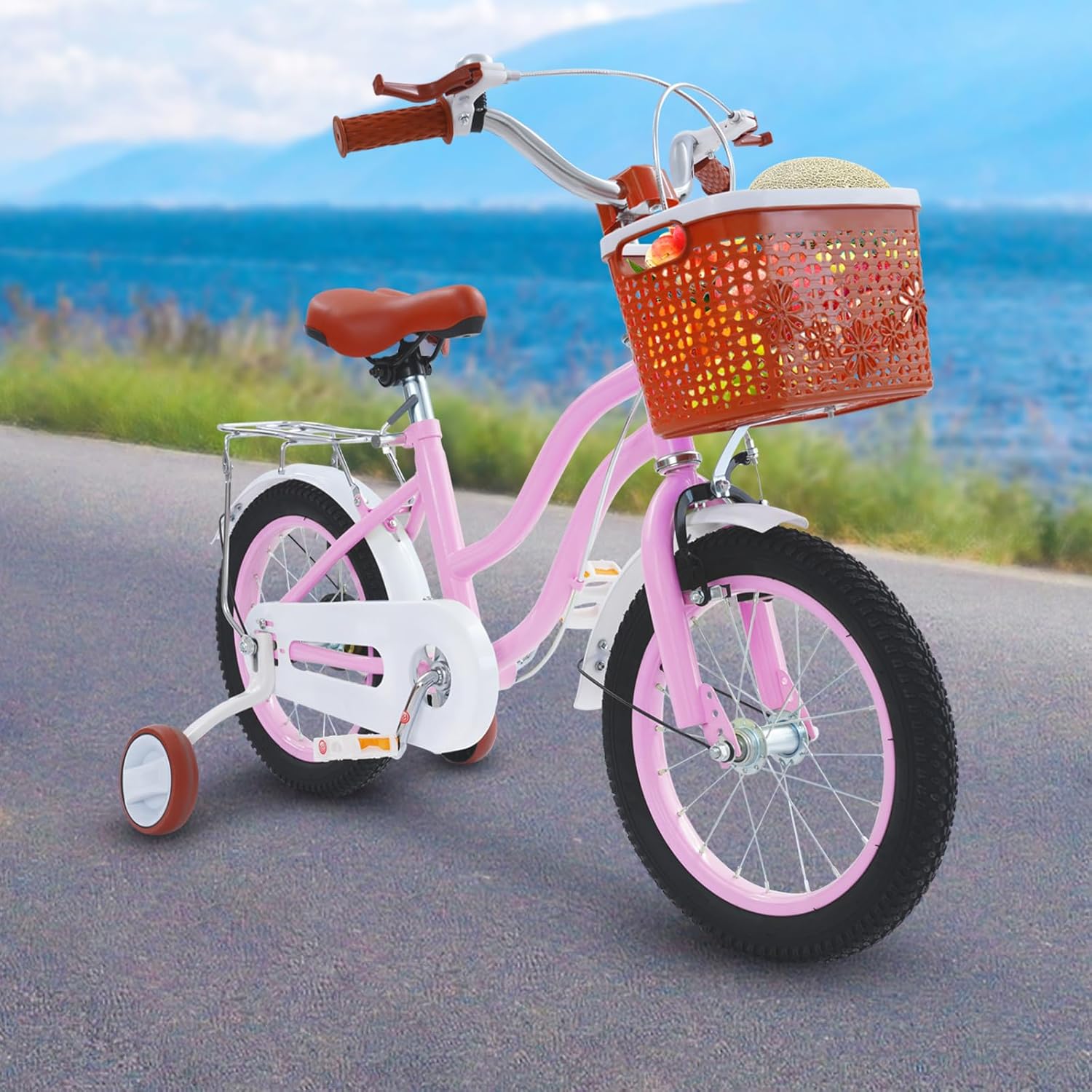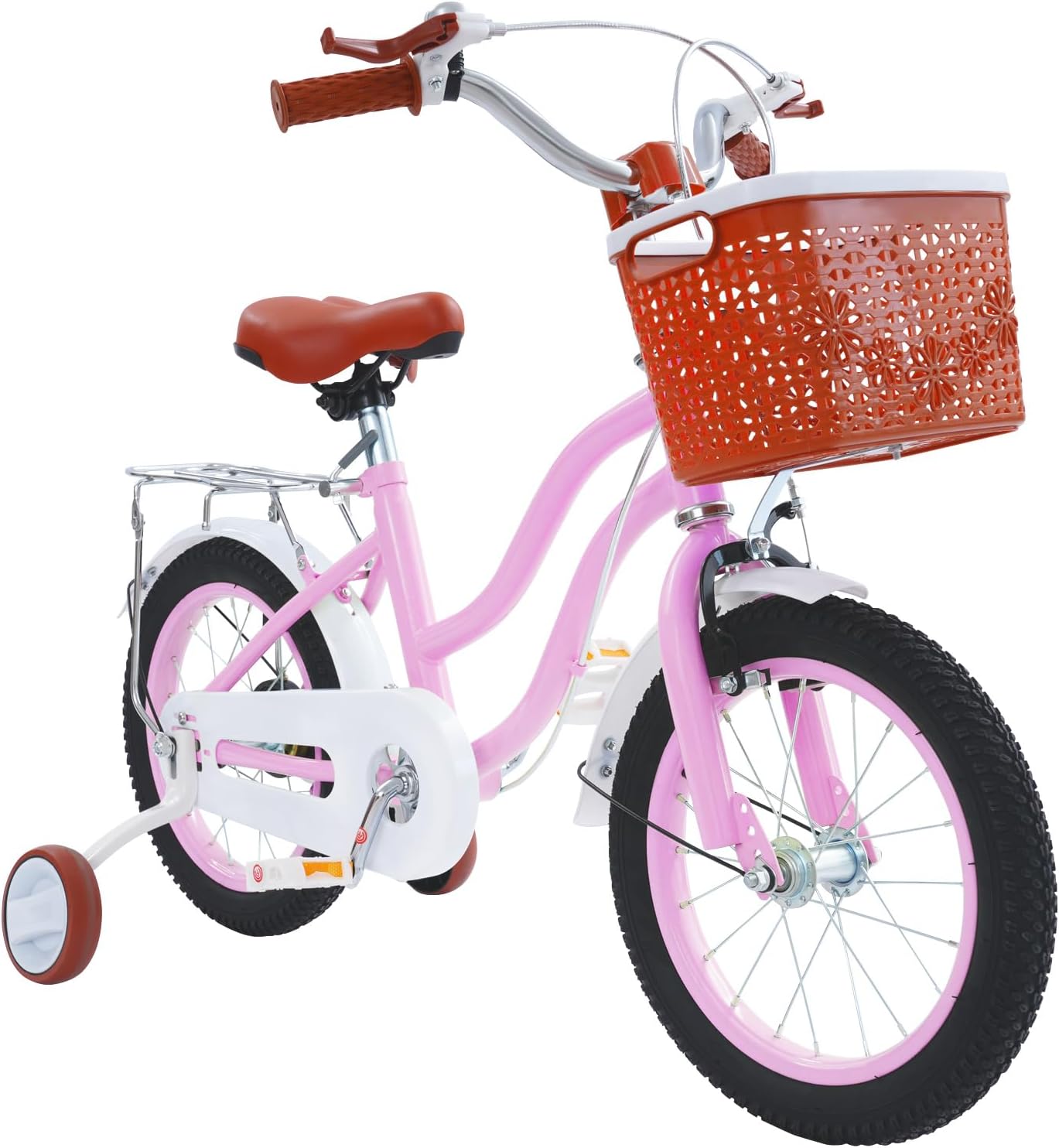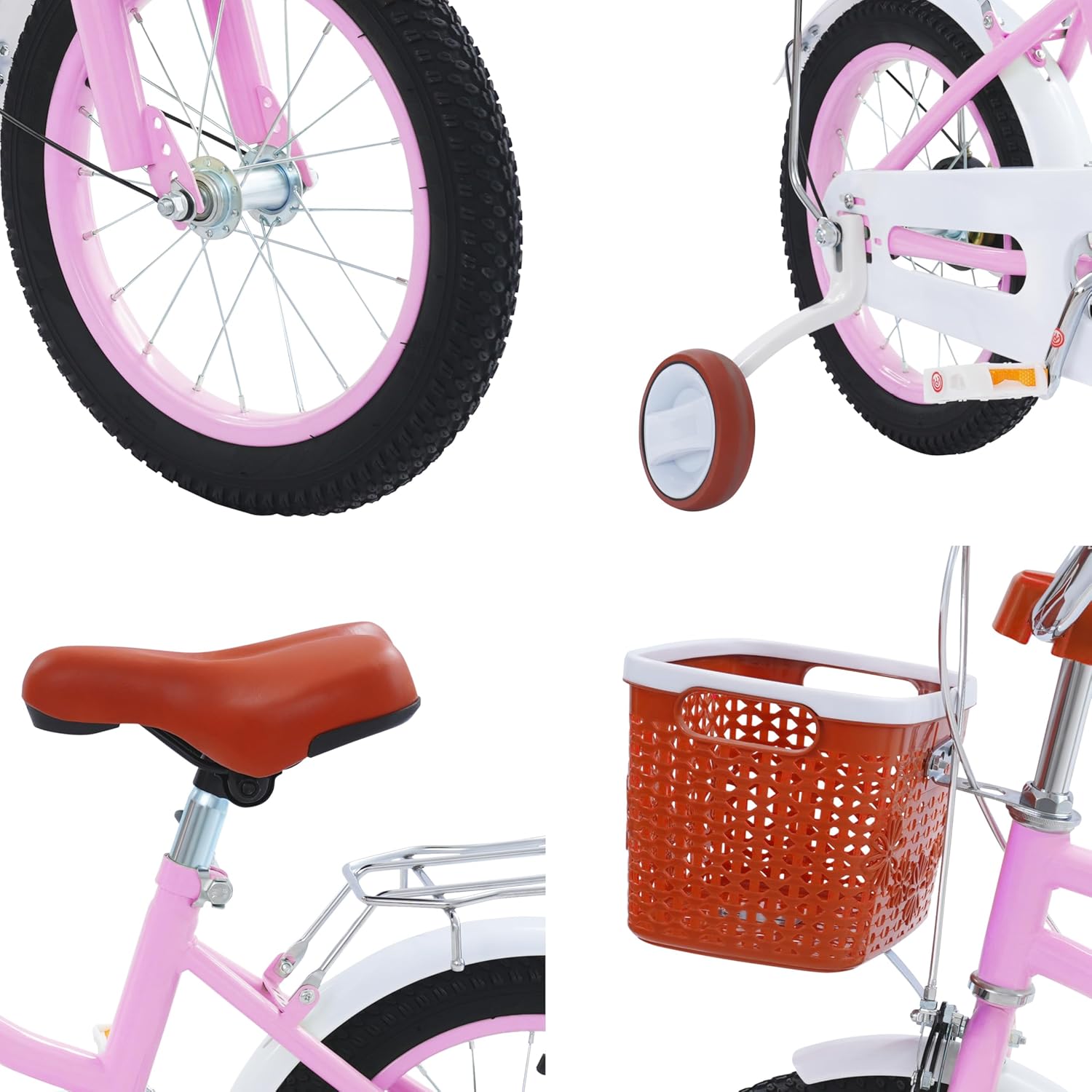 Jetzt entdecken: 14 Inch Children’s Bicycle High Carbon Steel Bicycle with 2 Stabilisers, Adjustable Seat Height and Handlebar Height, Small Children’s Bicycle with Basket, Youth Children’s Bicycle for Boys and Girls