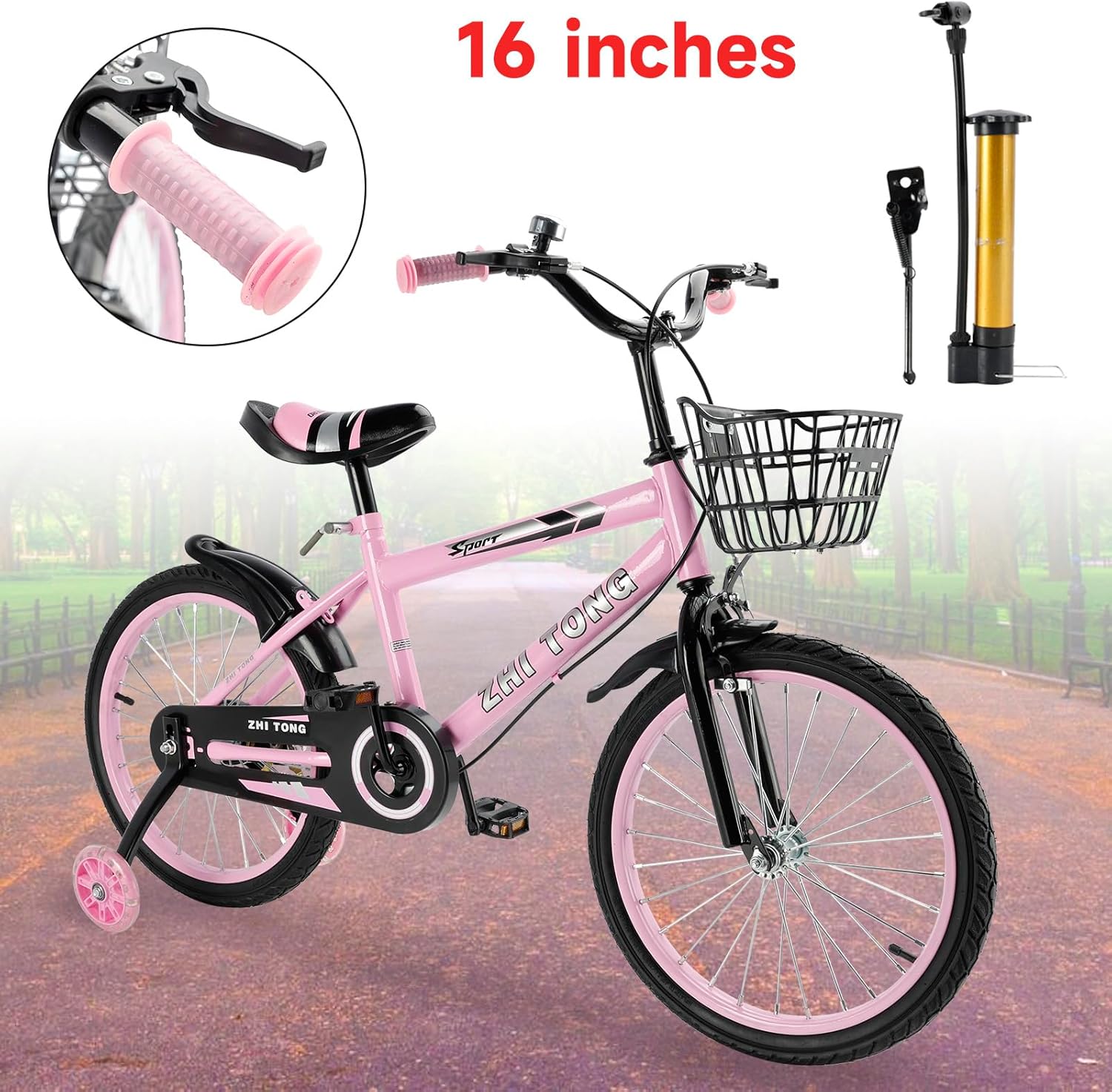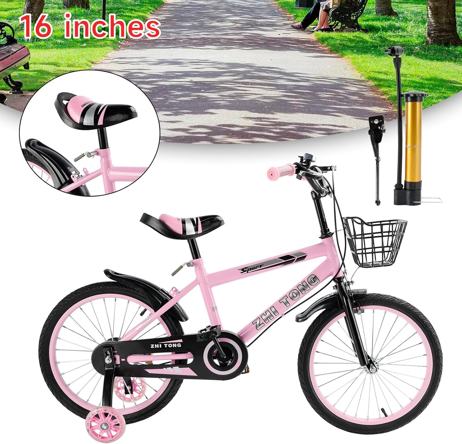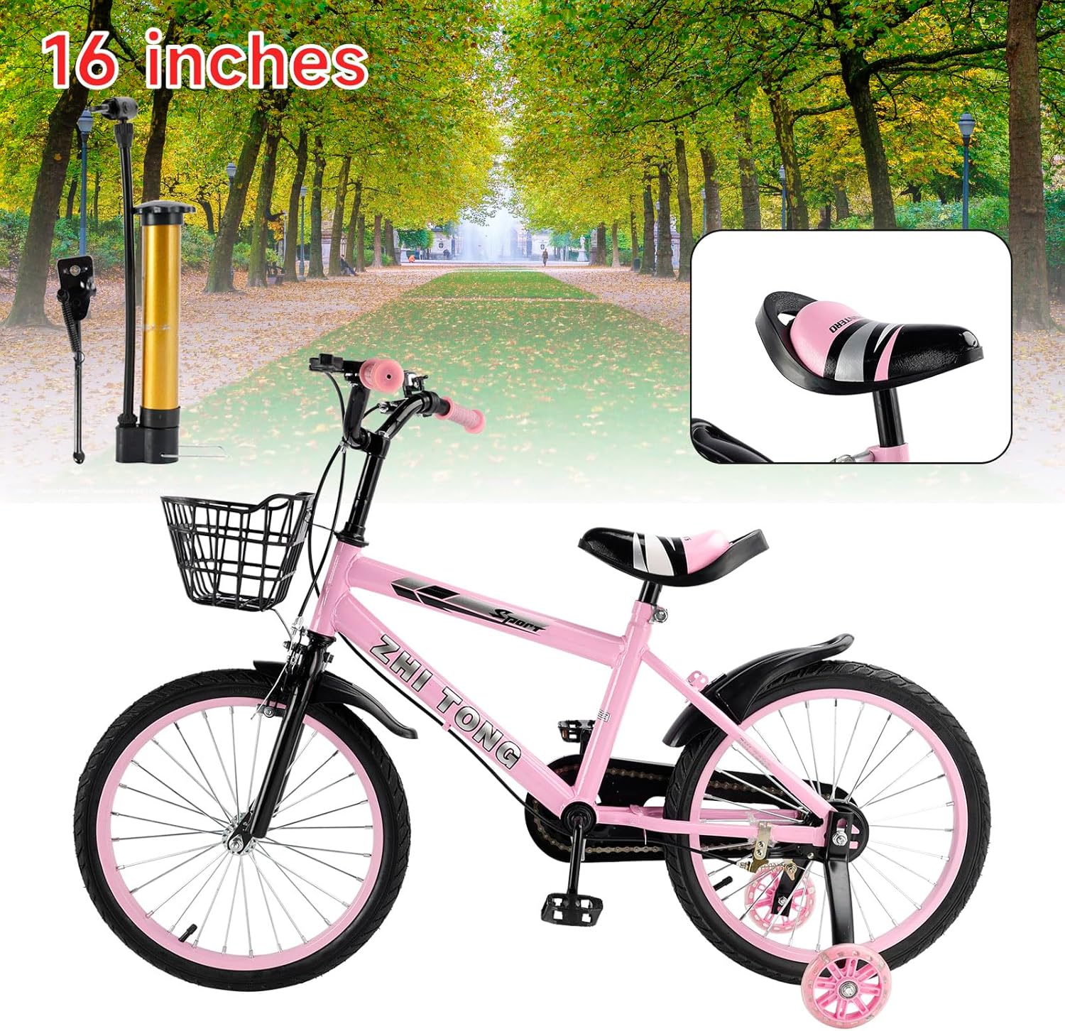 Das 16 Inch Children’s Bike, Adjustable Seat & Handlebar, Carbon Steel Frame, Double Brakes, Shockproof Spoke Wheels, Magnetic Flash Wheel, Removable Stabilisers, Boys ist ideal für Alltagspendler, die ein zuverlässiges Fahrrad suchen.
