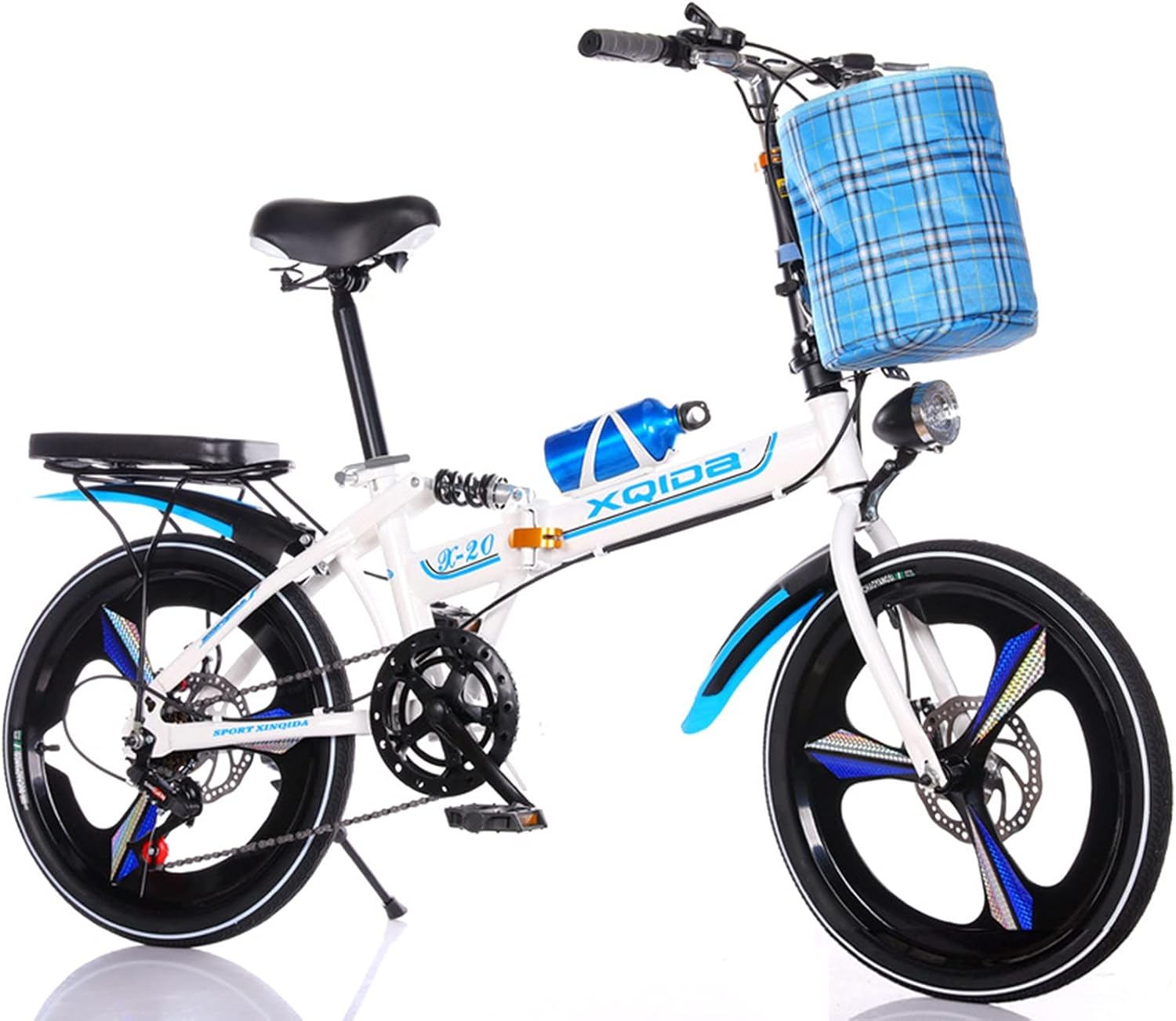 Top-Angebot: 20 Inch Folding Bike, Carbon Steel Frame Bicycle Folding Bike with Comfort Saddle Basket and Stand Pannier Rack D, 20 Inches