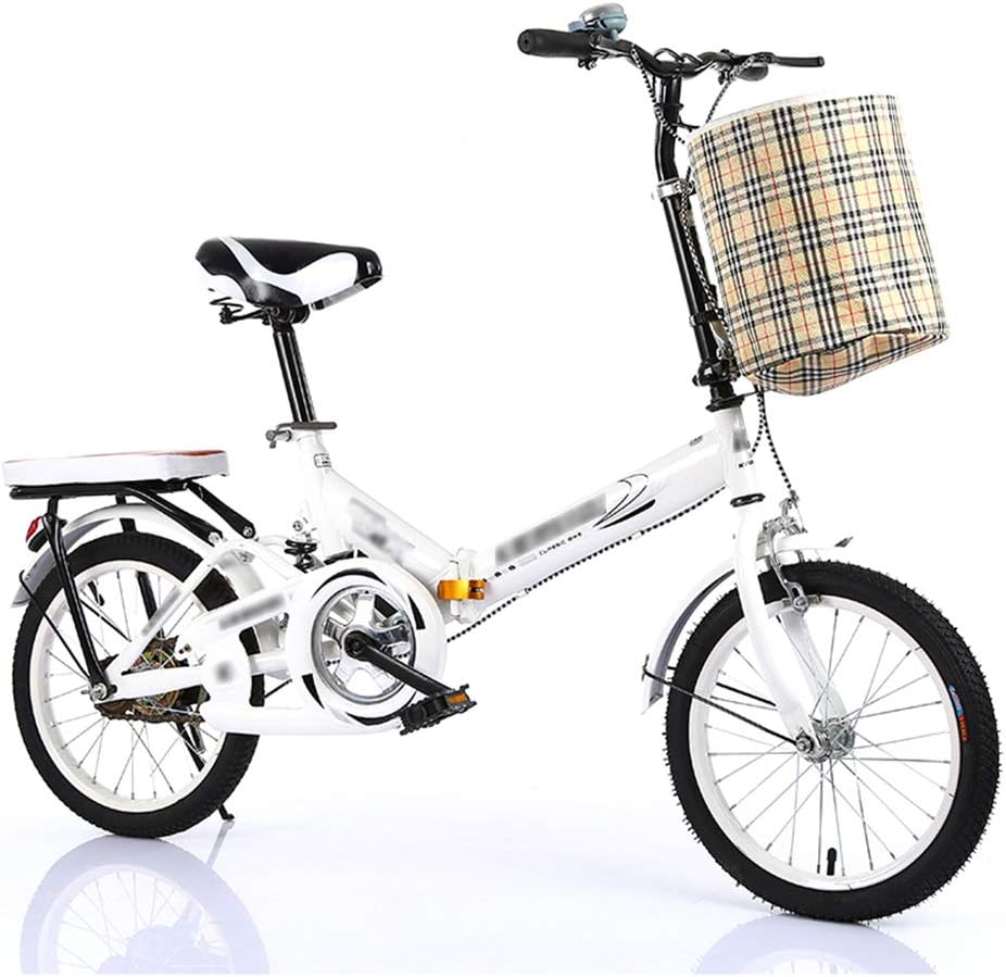Jetzt entdecken: 20 Inch Folding Bike, Carbon Steel Frame, Folding Bicycle with Stand, Pannier Rack and Basket for Men, Women, Girls, Boys, White-B