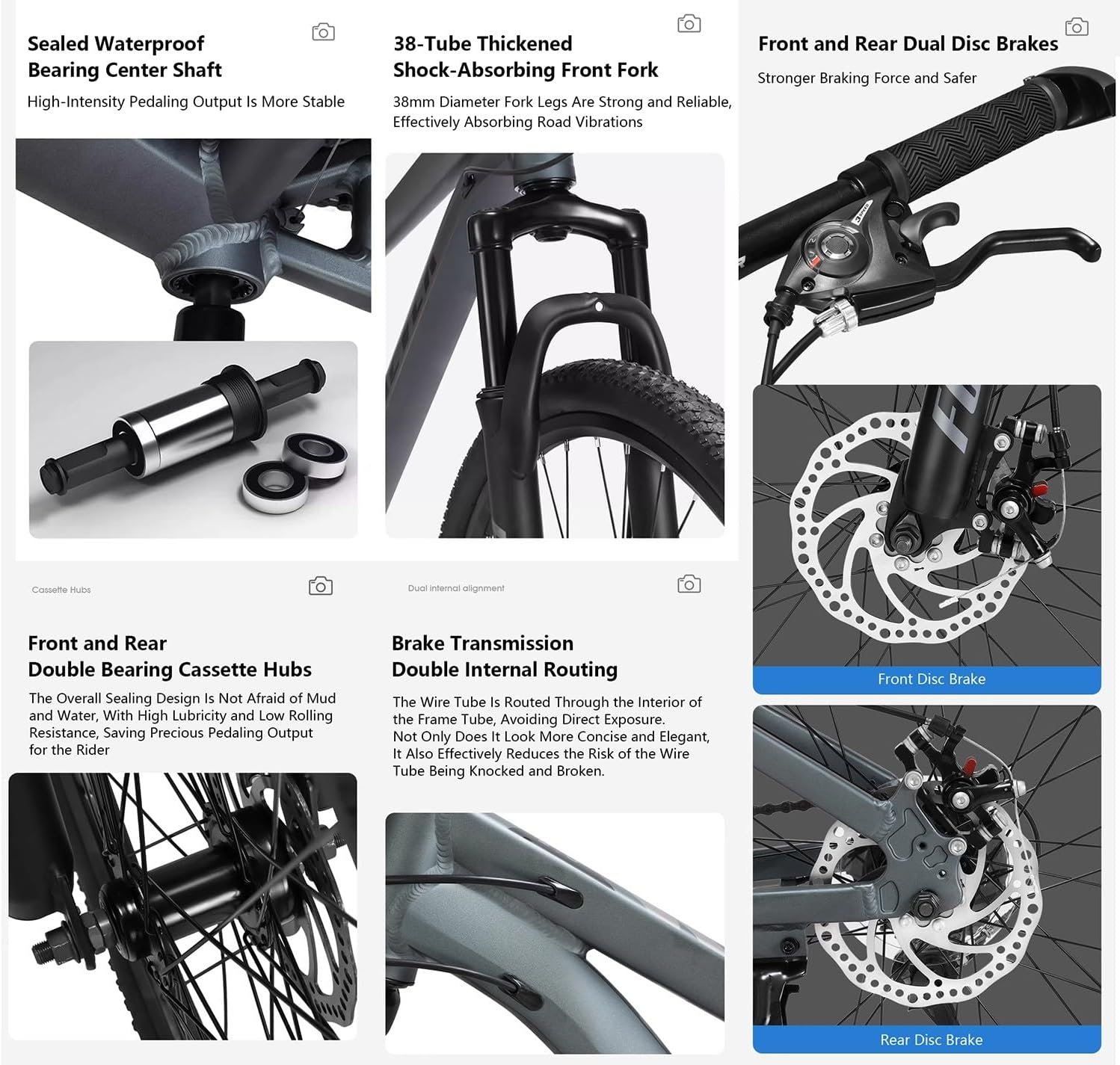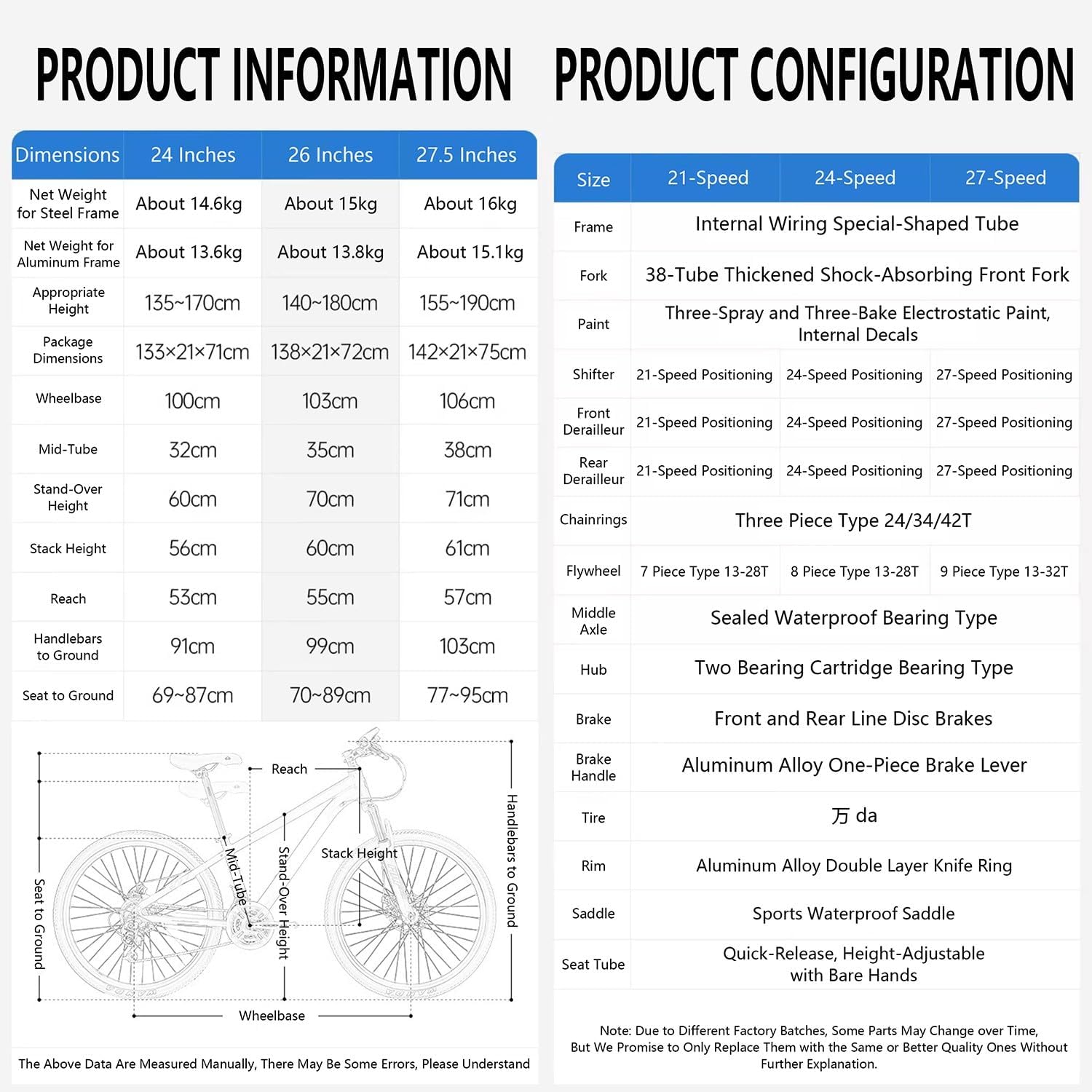Mit dem 24/26 Inch Mountain Bike, 21/24/27 Speeds, MTB Bike, Steel Frame, MTB with Mudguard, for Girls Boys Men and Women Cycling Enthusiasts bekommst du Qualität, Komfort und Stil – perfekt für deine nächste Tour.