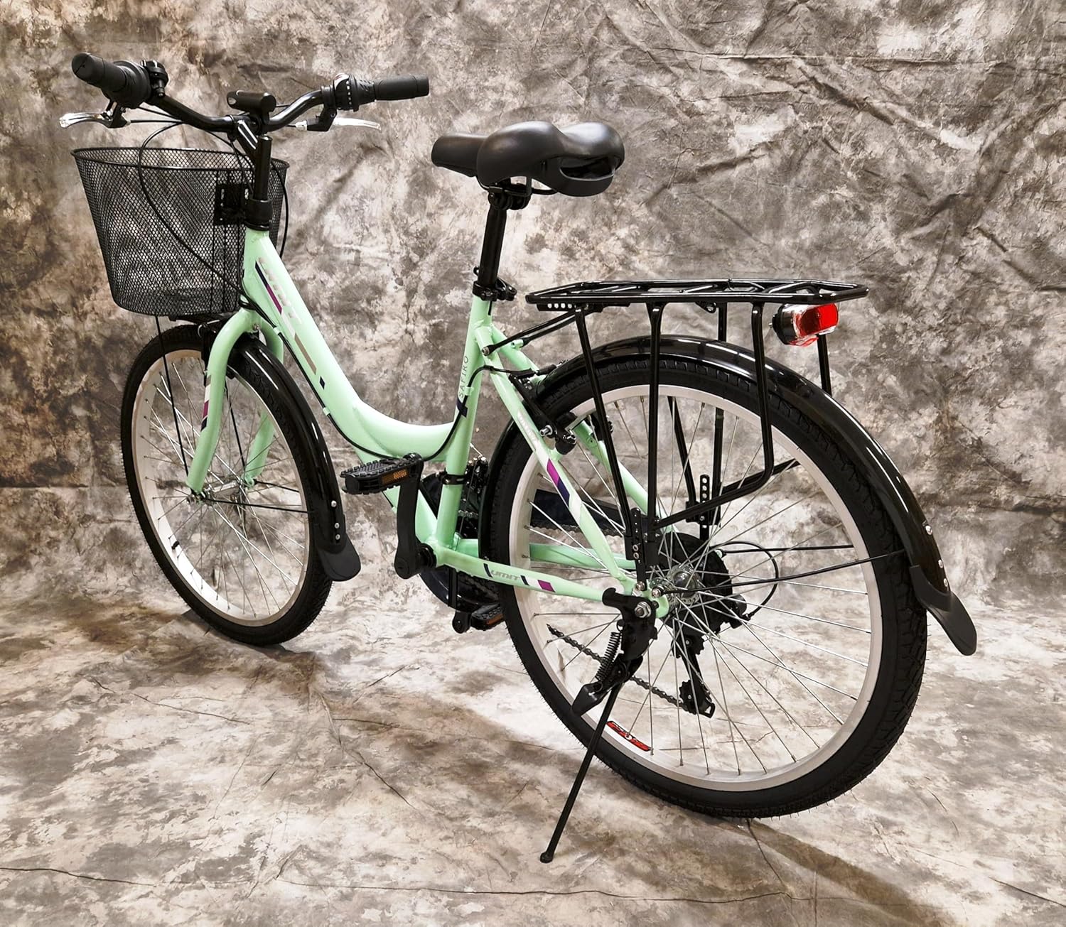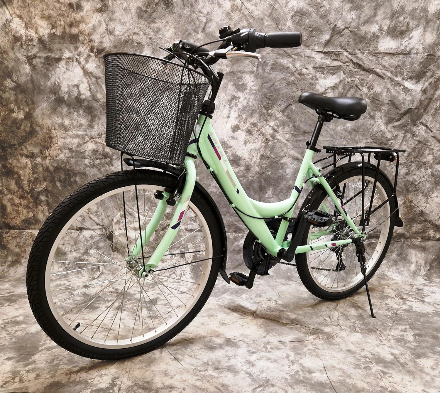 Top-Angebot: 26 Inch Women’s City Bike Safiro 21-Speed Derailleur Gears, Pannier Rack, Light and Basket 2608 Mint Please Note Suitable From 155 cm Body Size