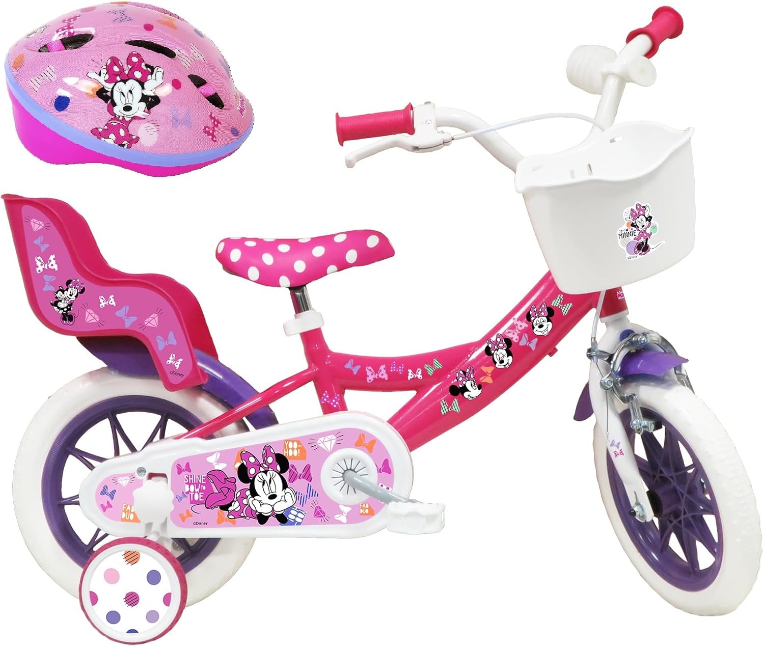 Top-Angebot: A.T.L.A.S. Disney Minnie Girls Children’s Bicycle 12 Inch Equipped with 1 Brake, Front Basket, Rear Doll Holder, Mudguard + Helmet Included (30.5 cm), Mouse, Pink, 12 Inches