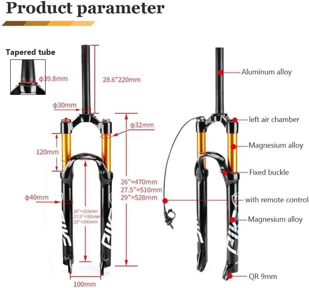 Jetzt entdecken: AADDFDD VPPV Mountainbike-Gabel 26/27,5/29 Zoll, Magnesiumlegierung MTB-Federung 28,6 mm gerades Rohr Gabelschaft Fahrrad Radfahren Fernverriegelung 120 mm (Farbe: Manuell konisch, Größe: