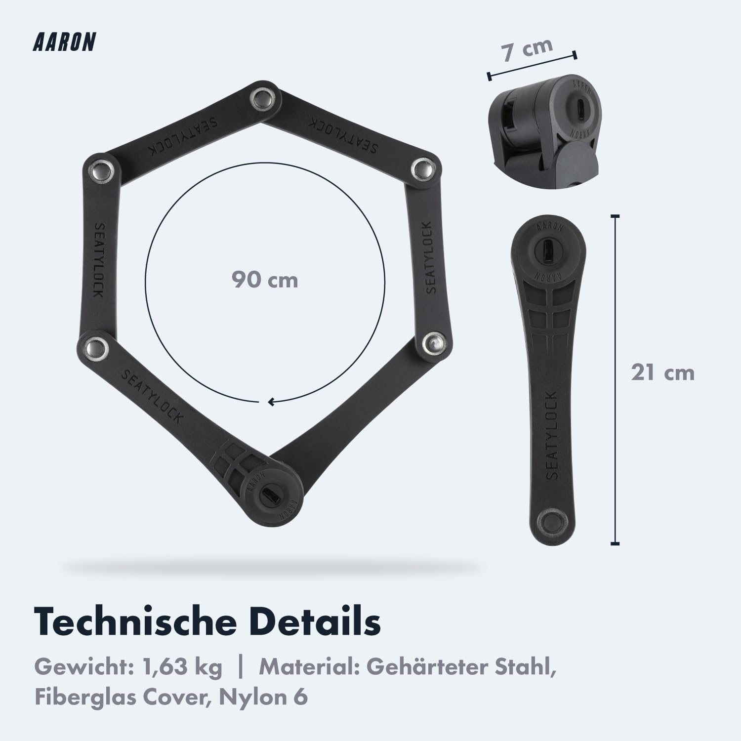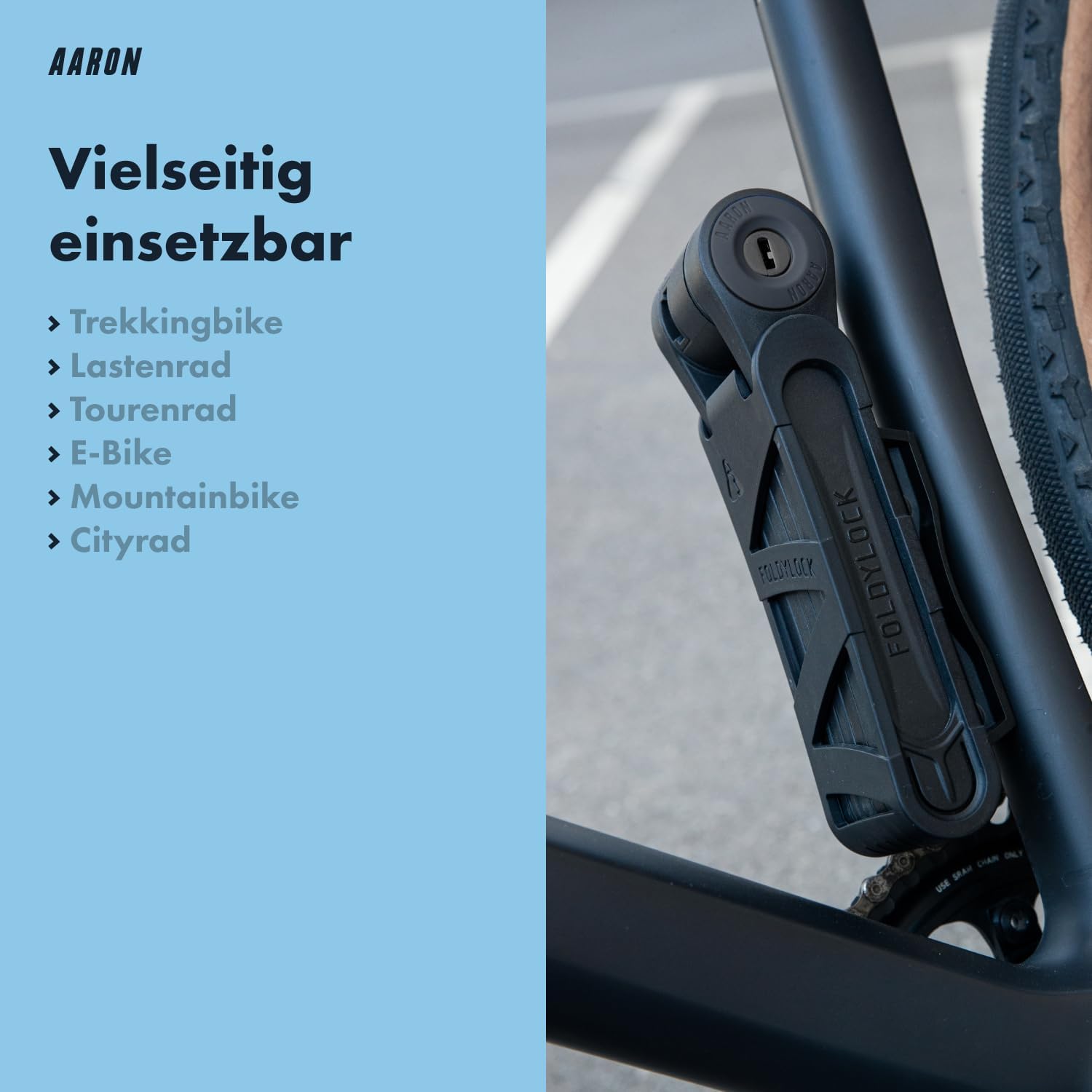 Das AARON Premium Bicycle Lock – Secure Folding Lock Level 18, Patented High Security Lock with Bracket – Lightweight Bicycle Lock with Key for E-Bike, Road Bike, Motorcycle, MTB ist ideal für Alltagspendler, die ein zuverlässiges Fahrrad suchen.