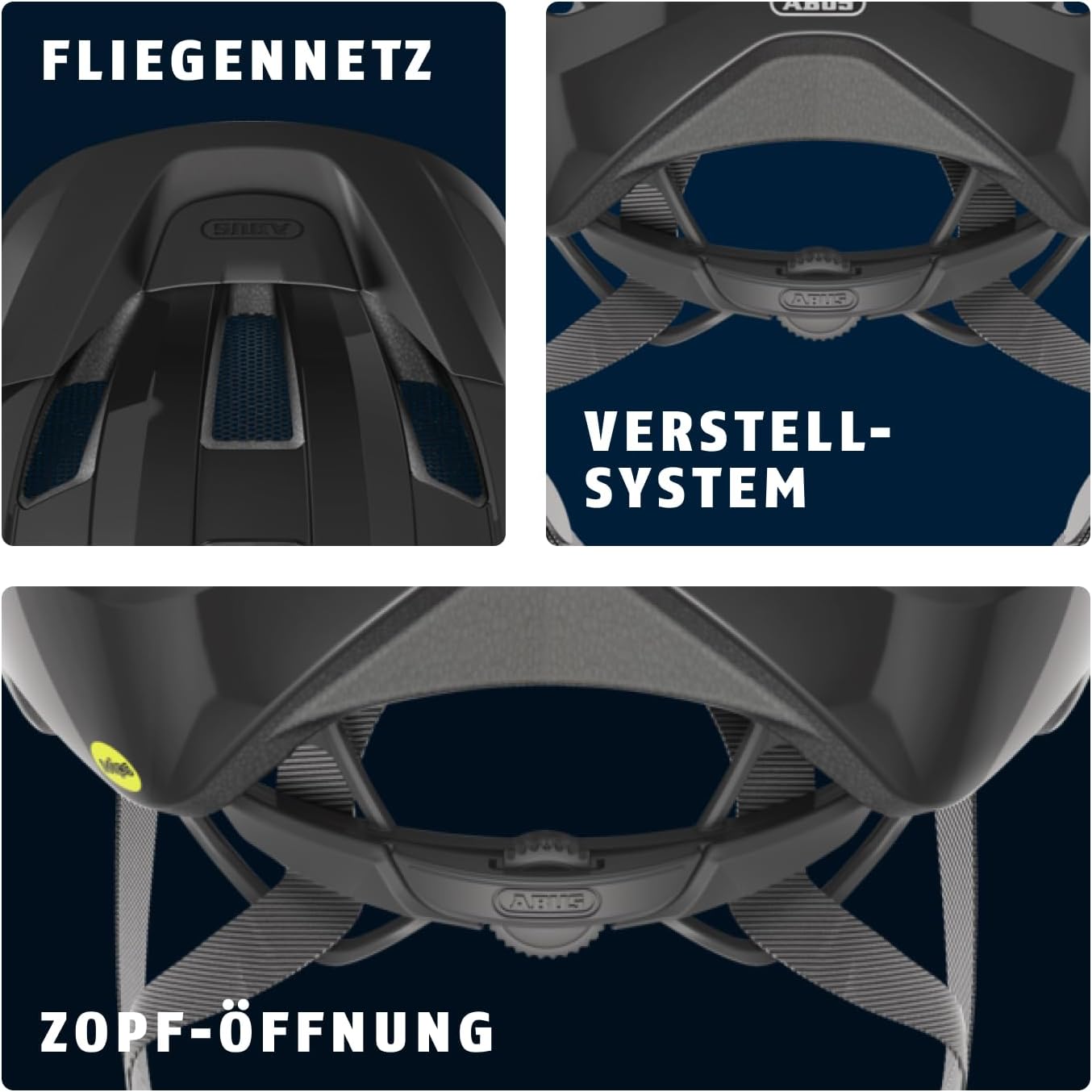 Jetzt entdecken: ABUS Macator MIPS Road Bike Helmet for Beginners with Peak, Suitable for Plaited Weaves, for Men and Women