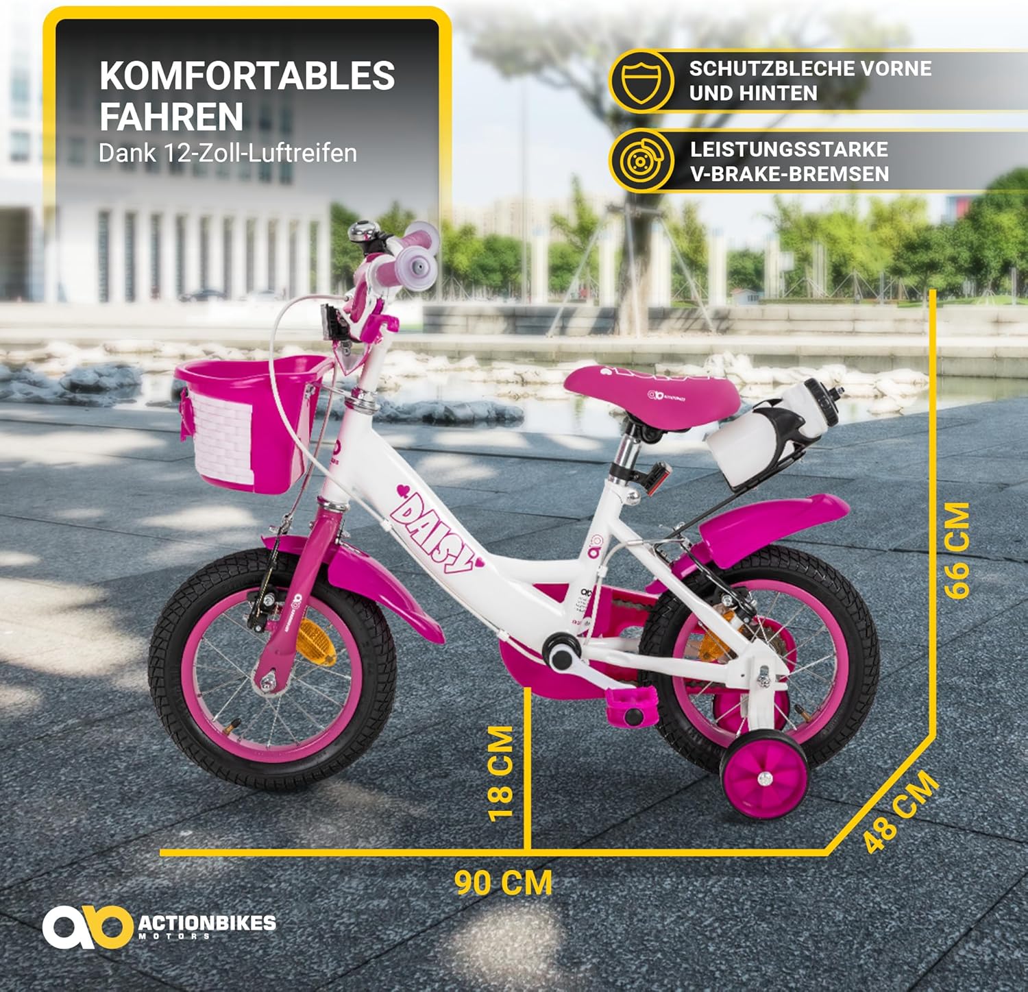 Top-Angebot: Actionbikes Children’s Bicycle Daisy | 12 16 20 Inch – V-Brake Brakes – Bicycle for Children from 2-9 Years – Mudguard for Girls and Boys – Bicycles – Bicycle – Children’s Bike