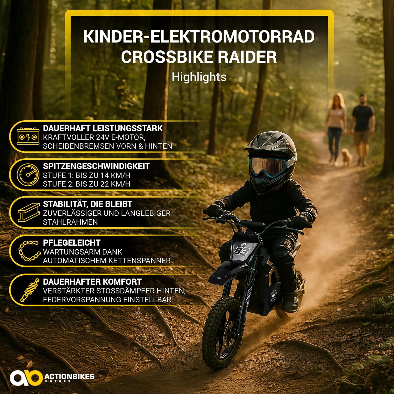 Top-Angebot: Actionbikes Motors Children’s Electric Motorcycle | 22 Volt 200 Watt Motor up to 22 km/h | E Bike | Dirt Bike | Electric Bike | Motocross | Pocket Bikes | Pocket Bike | Dirt Bike from 6 Years (Black)