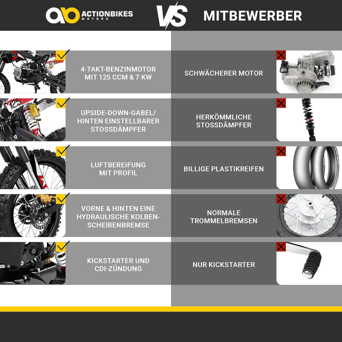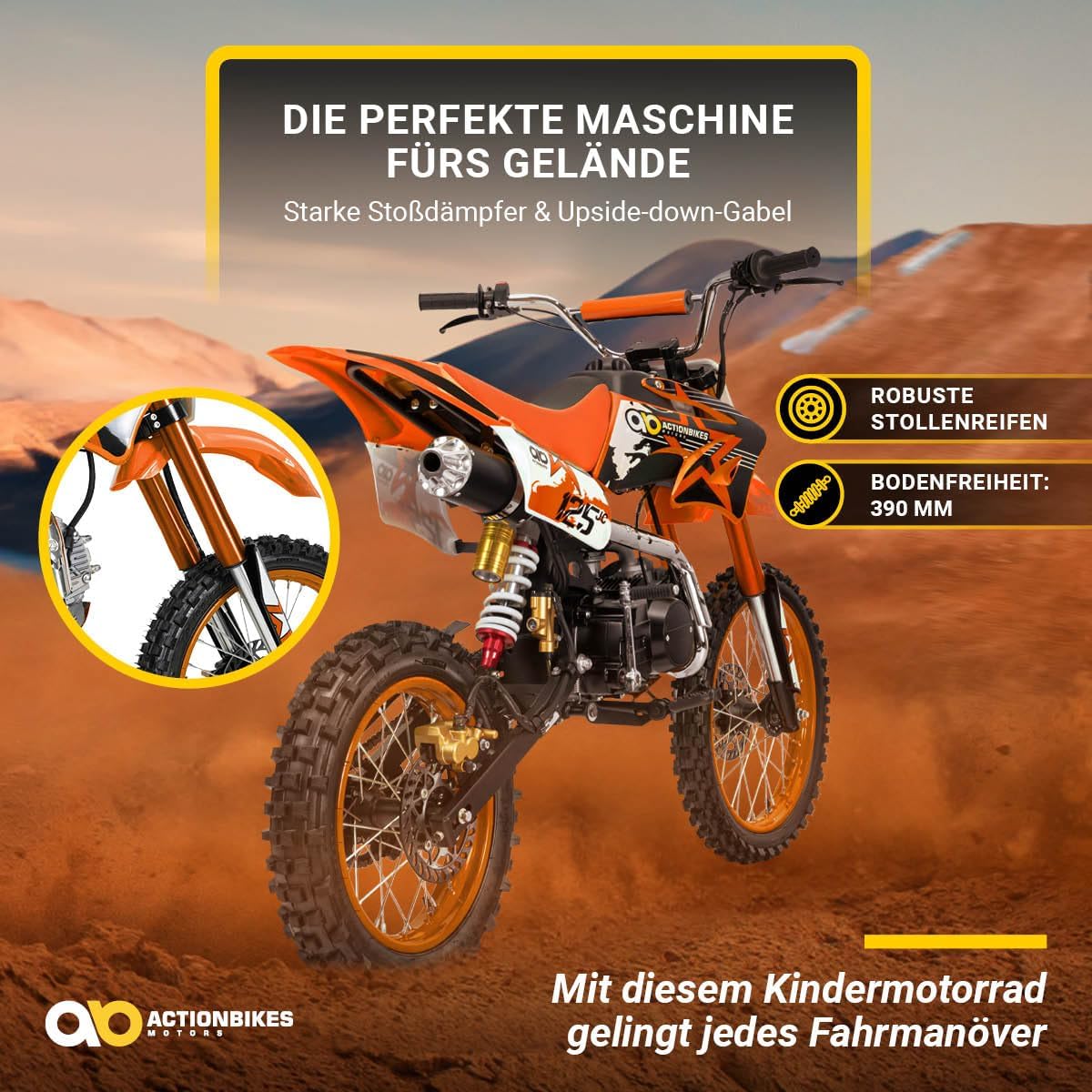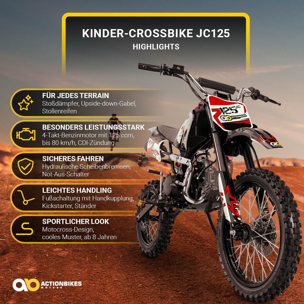 Top-Angebot: Actionbikes Motors Midi Children’s Youth JC125 Crossbike, 125 cc – Hydraulic Disc Brakes – CDI Ignition – Up to 80 km/h