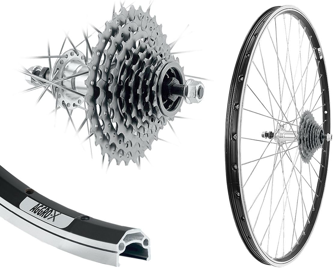 Top-Angebot: AGGRO-X 28 Inch Aluminium Rear Wheel 19-622 Wheel Hollow Chamber Rim Brake with 8 Speed Sprocket 24 Speed