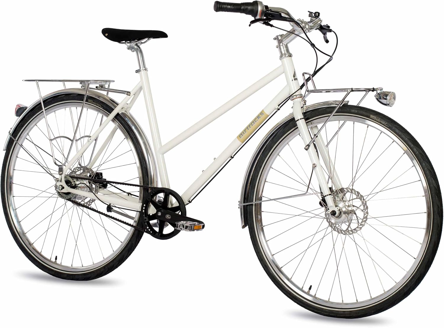 Jetzt entdecken: Airtracks 28 Zoll Damen Urban Bike City Fahrrad Street CrMo Gates Carbon Drive Belt Shimano 7 x Gang Nexus Weiß – Rahmenhöhen 50cm, 53cm – Modelljahr 2025