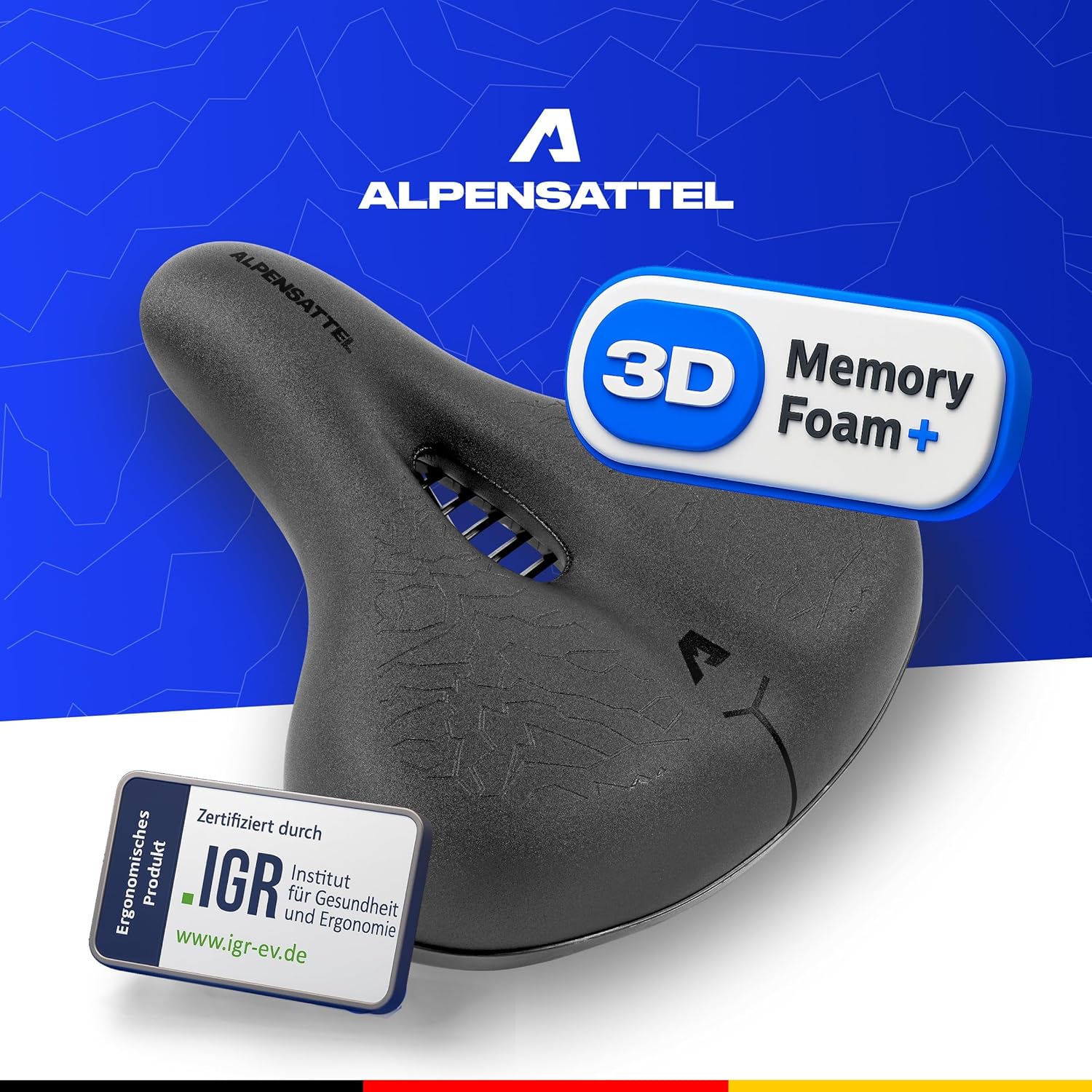 Mit dem Alpensattel 3.0 Bicycle Saddle Ergonomic Bicycle Saddle for Men and Women Memory Foam for Ideal Pressure Distribution Available in 3 Designs The Right Saddle for Every Requirement bekommst du Qualität, Komfort und Stil – perfekt für deine nächste Tour.
