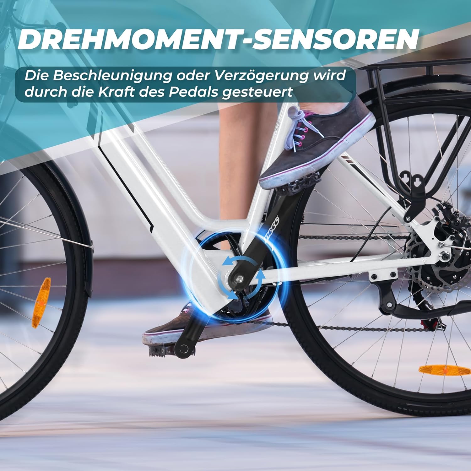 Top-Angebot: AOIHO E Bike, 28 Inch EBike Men’s E-Bike Women with 36 V 360 Wh Battery, 25 km/h and 80 km Range, 250 W Motor Electric Bicycle Trekking Bike E Bicycle with 6 Speed Pedelec City Bike EBikes for Adults