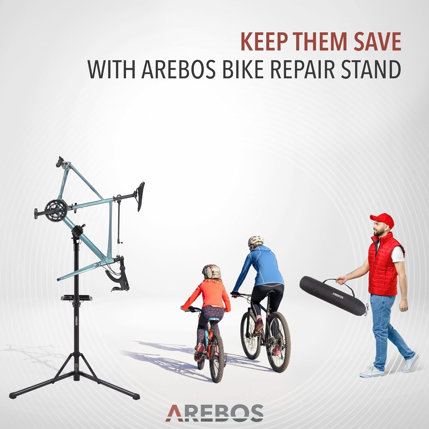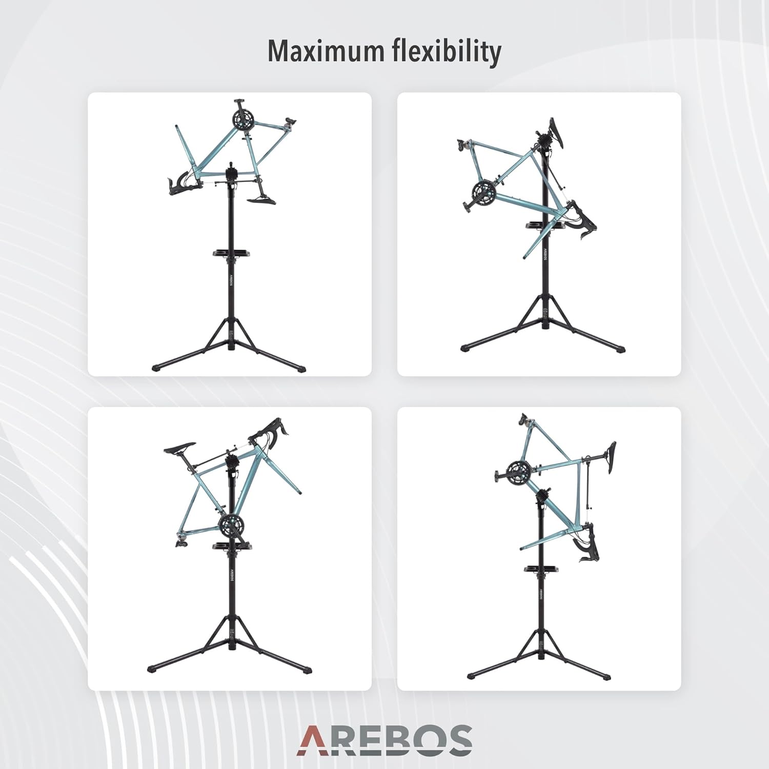 Jetzt entdecken: Arebos Aluminium Bicycle Repair Stand – Professional Repair Stand for E-Bike, Mountain Bike & Bicycle, 360° Rotation, with Bag and Quick Release Device, Black