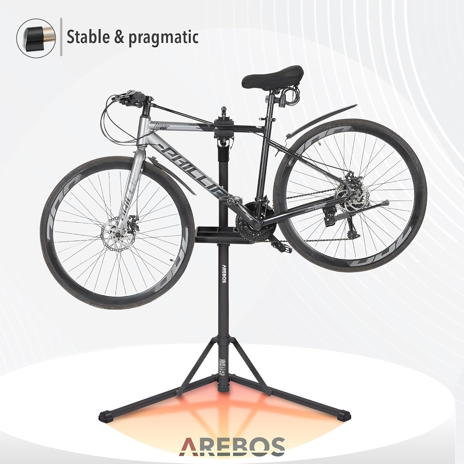 Mit dem Arebos Aluminium Bicycle Repair Stand – Professional Repair Stand for E-Bike, Mountain Bike & Bicycle, 360° Rotation, with Bag and Quick Release Device, Black bekommst du Qualität, Komfort und Stil – perfekt für deine nächste Tour.