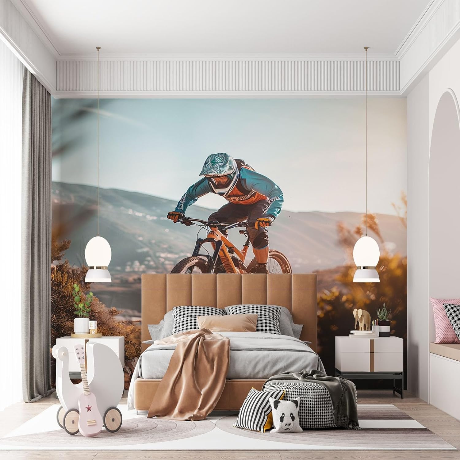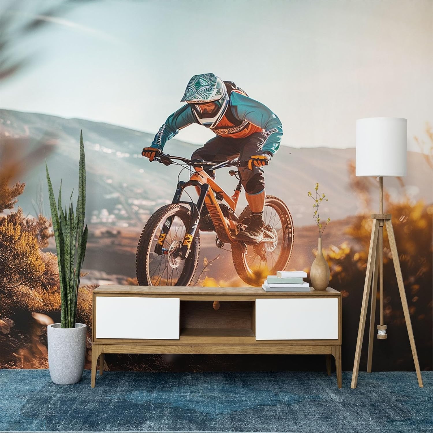 Mit dem Art Photo Wallpaper, Outdoor Sports, Non-Woven Wall Painting, Mountain Bike, Off-Road Wallpaper for Living Room, Bedroom, Office, Hallway, 400 x 280 cm (W x H), Wall Decoration for Living Room bekommst du Qualität, Komfort und Stil – perfekt für deine nächste Tour.