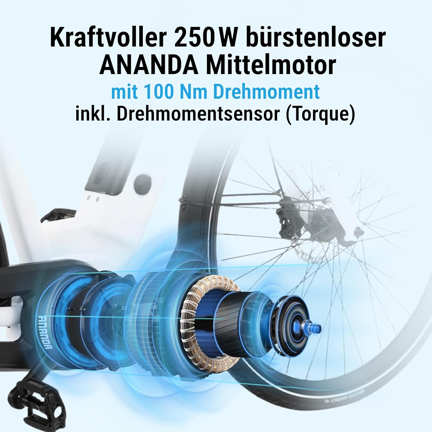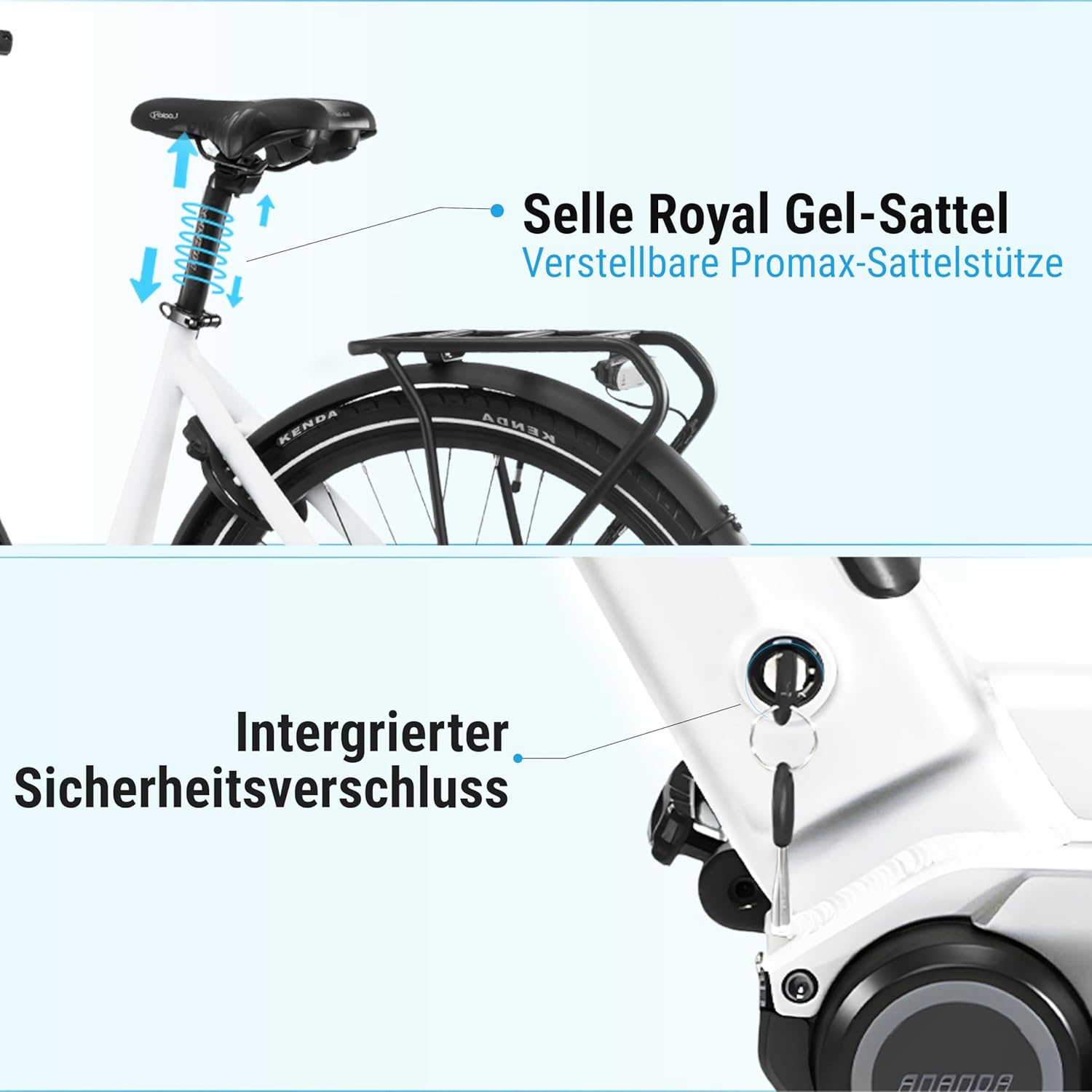 Mit dem AsVIVA E-Bike B14 City Falter 28 Inch City Bike – Dutch Bike for Men and Women Electric Bicycle Pedelec 25 km/h Low Entry 250 W Motor 36 V 17.5 Ah with up to 150 km Range bekommst du Qualität, Komfort und Stil – perfekt für deine nächste Tour.