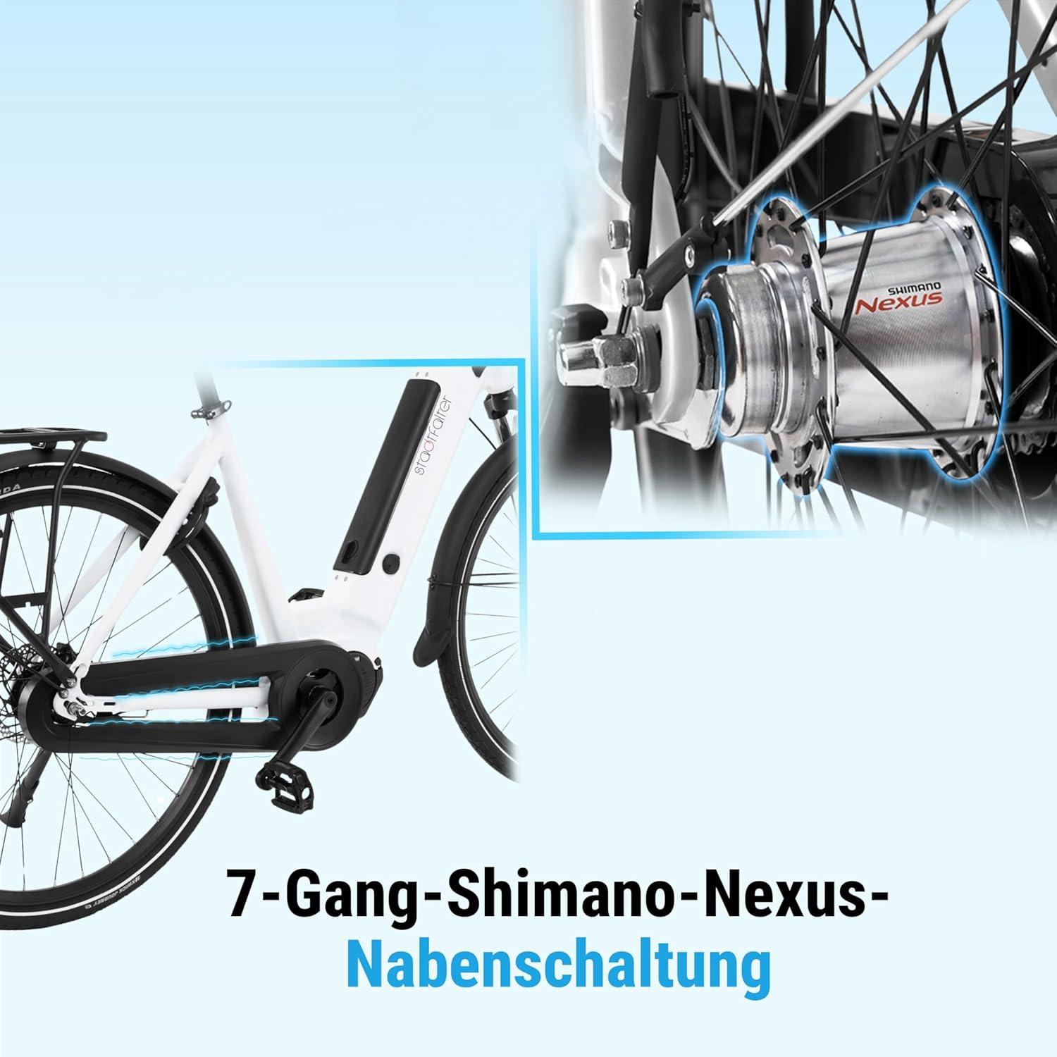 Top-Angebot: AsVIVA E-Bike B14 City Falter 28 Inch City Bike – Dutch Bike for Men and Women Electric Bicycle Pedelec 25 km/h Low Entry 250 W Motor 36 V 17.5 Ah with up to 150 km Range