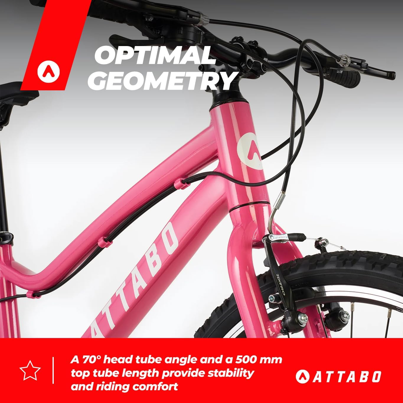 Jetzt entdecken: ATTABO Ease 24 Kids Bicycle (7-11 Years) Aluminium Frame (Only 9 kg), 24 Inch Wheels, Shimano Gears, V-Brakes, for 120-145 cm Height, Ergonomic, Stable and Comfortable