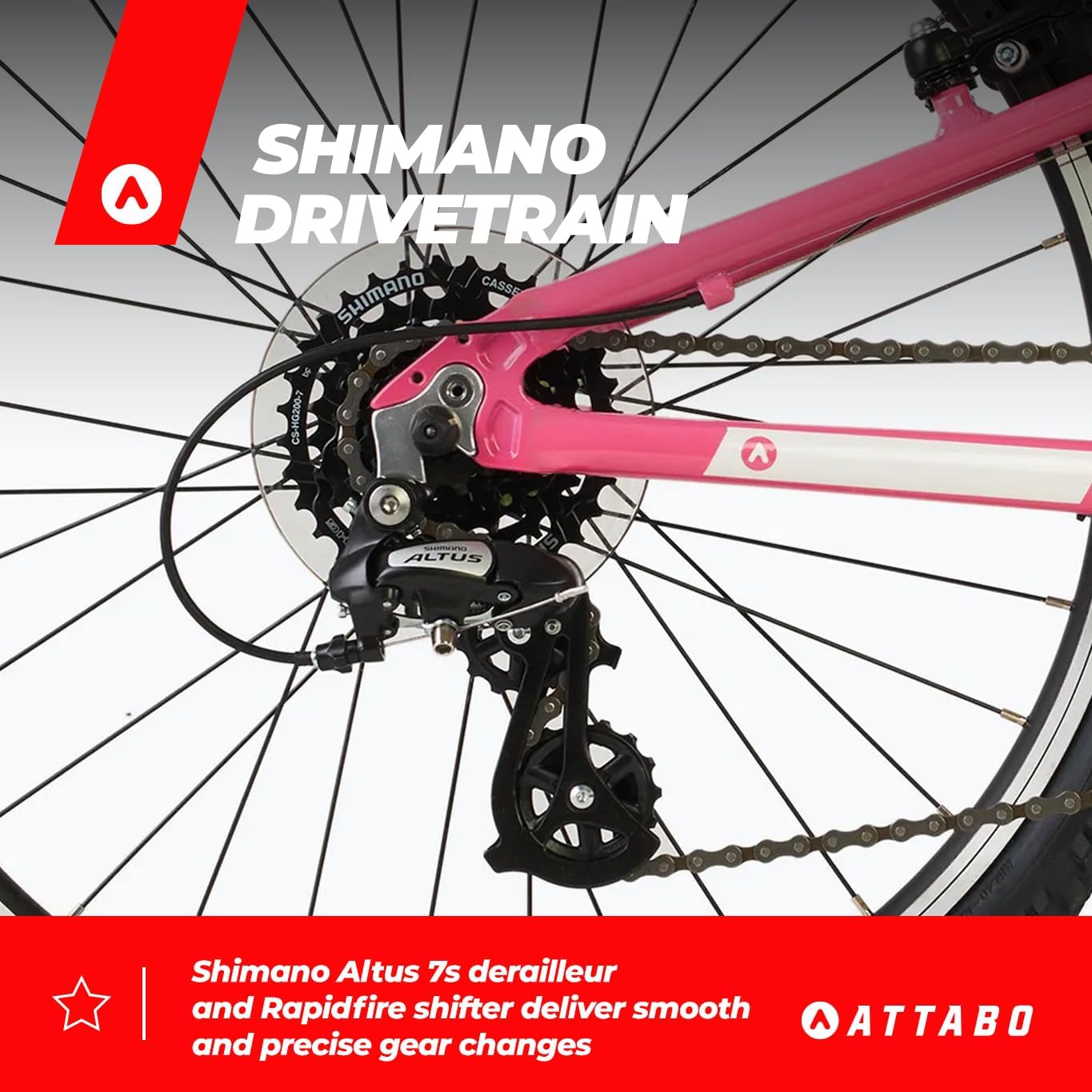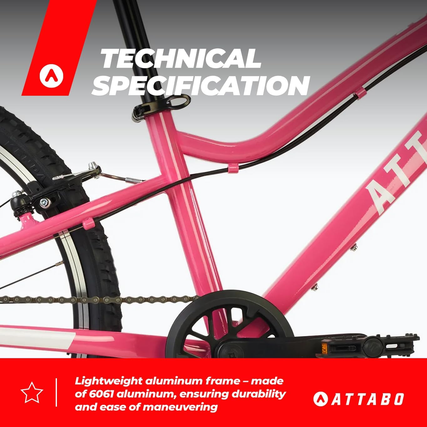 Das ATTABO Ease 24 Kids Bicycle (7-11 Years) Aluminium Frame (Only 9 kg), 24 Inch Wheels, Shimano Gears, V-Brakes, for 120-145 cm Height, Ergonomic, Stable and Comfortable ist ideal für Hobbyradler, die ein zuverlässiges Fahrrad suchen.