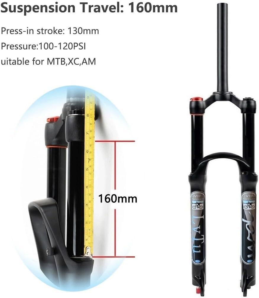Top-Angebot: AttLvTu Bicycle Air Suspension Fork 26/27.5/29 Inch MTB Fork, Suspension Travel 160 mm for XC Offroad, Mountain Bike, Downhill Cycling