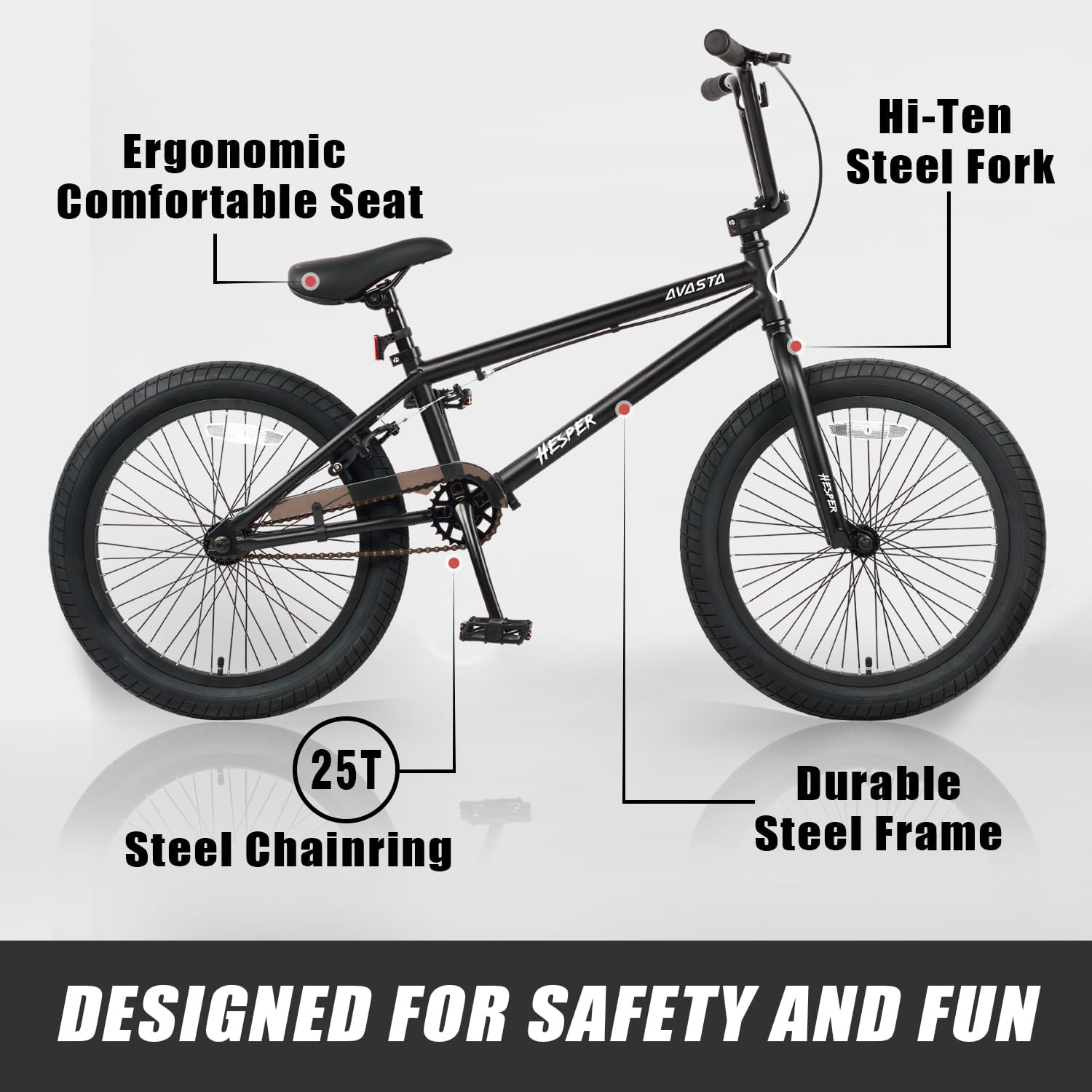 Das AVASTA Hesper 20 Zoll Kinderfahrrad Freestyle BMX mit 4 Pegs Fahrräder für 6-14 Jahre alte Jungen und Anfänger ist ideal für Alltagspendler, die ein zuverlässiges Fahrrad suchen.