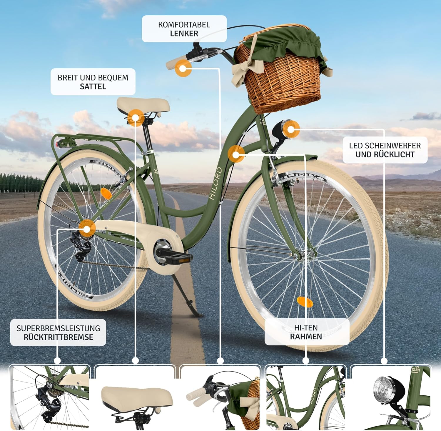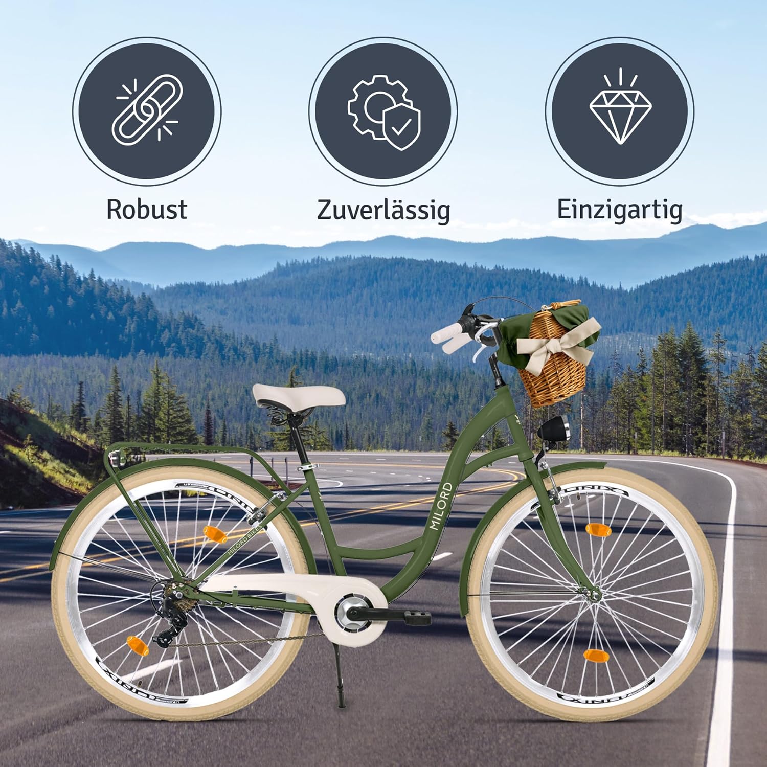 Das Balticuz OU Comfort Bicycle City Bike with Wicker Basket Women’s Bicycle Dutch Bike Retro 26 Inch Green/Cream 7 Speed ist ideal für Hobbyradler, die ein zuverlässiges Fahrrad suchen.