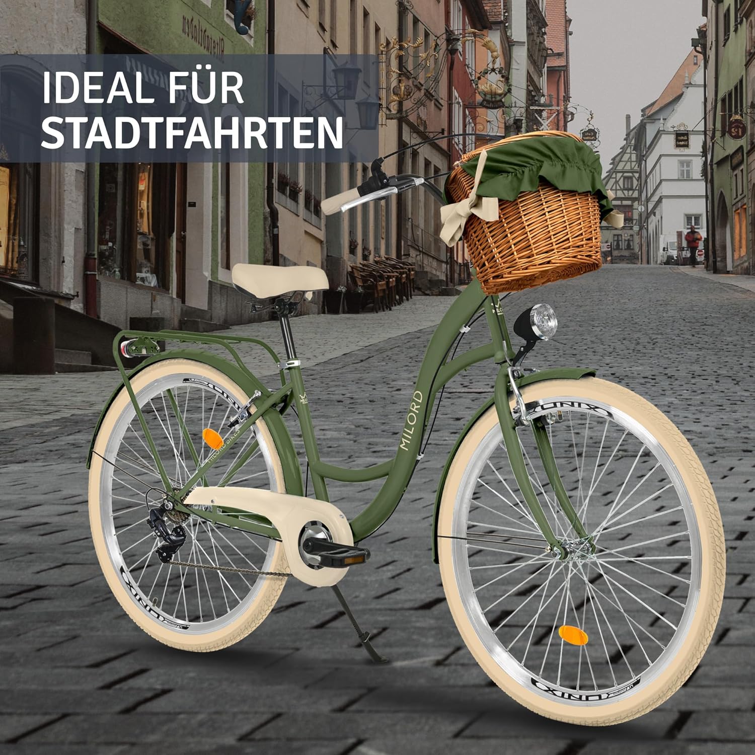 Top-Angebot: Balticuz OU Comfort Bicycle City Bike with Wicker Basket Women’s Bicycle Dutch Bike Retro 26 Inch Green/Cream 7 Speed