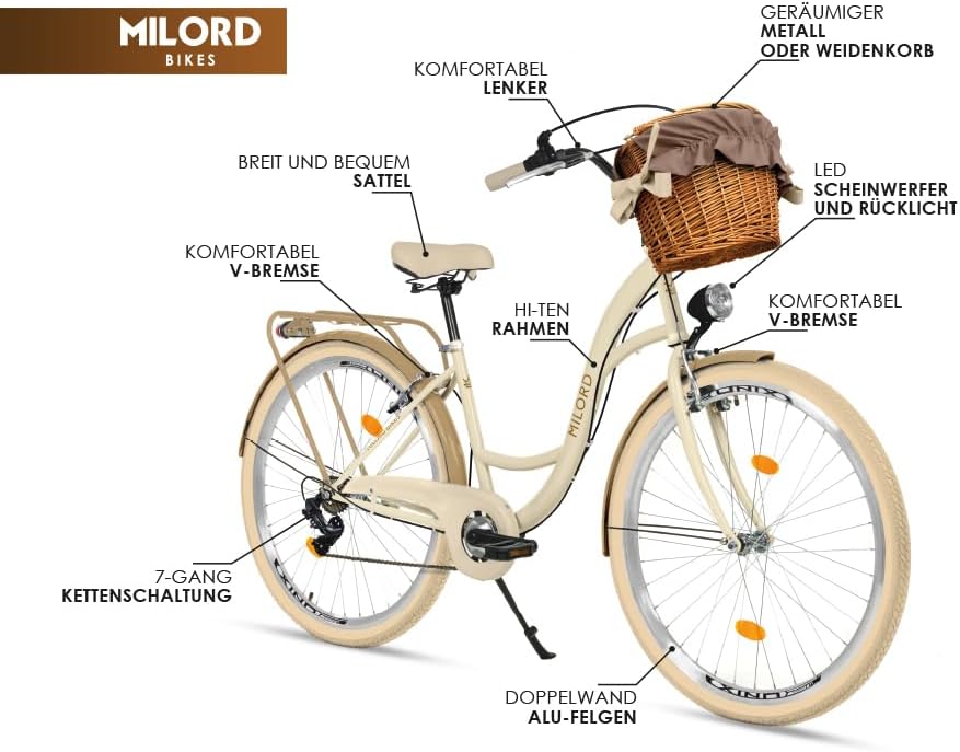 Top-Angebot: Balticuz OU Comfort Bicycle with Basket, Holland Bike, Women’s Bike, City Bike, Retro, Vintage, 28 Inches, Beige/Brown, 7-Speed