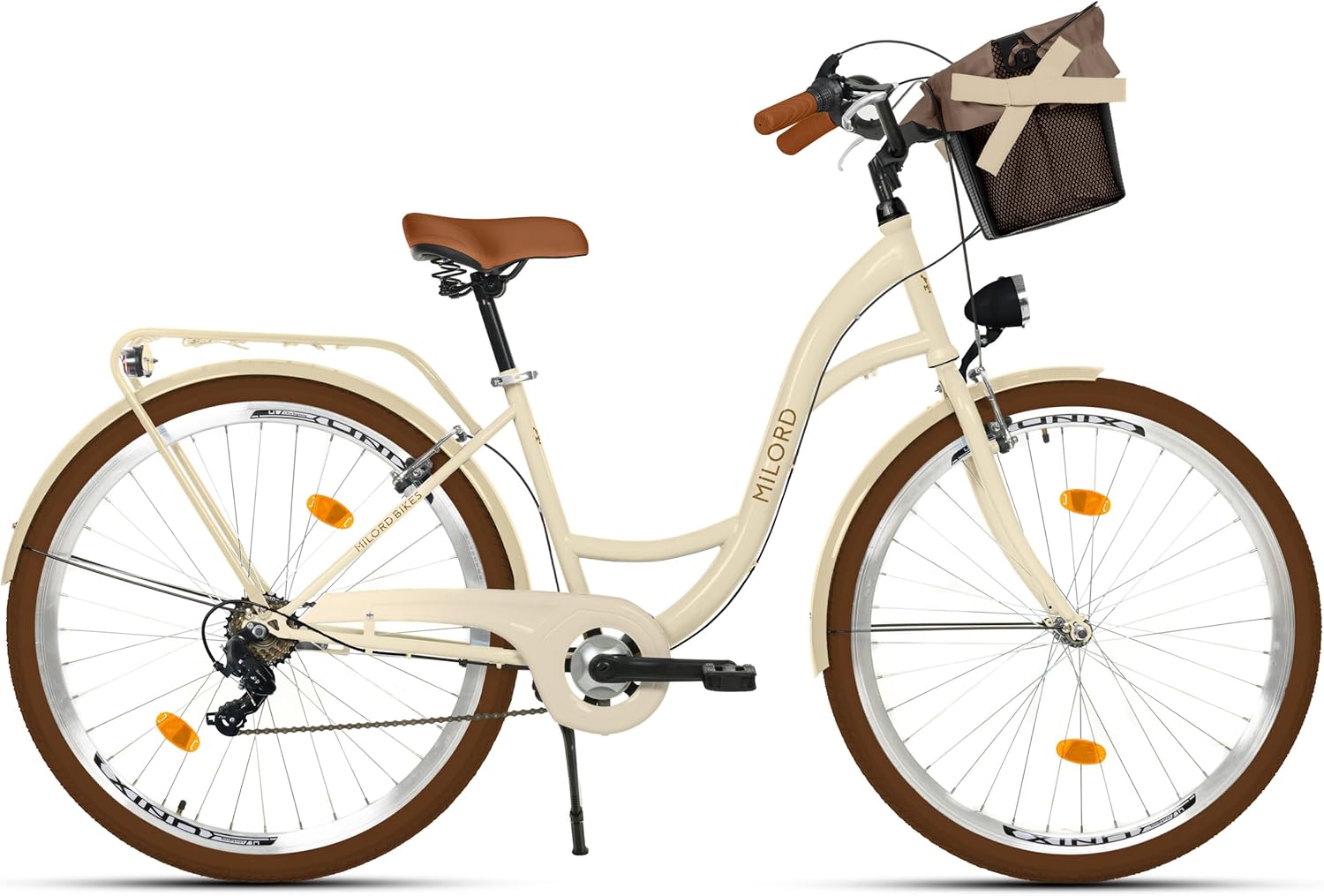 Das Balticuz OU Comfort Bicycle with Basket, Holland Bike, Women’s Bike, City Bike, Retro, Vintage, 28 Inches, Beige/Brown, 7-Speed ist ideal für Hobbyradler, die ein zuverlässiges Fahrrad suchen.