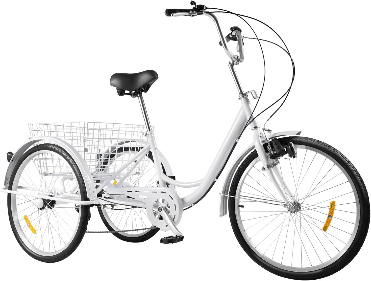 Das BAOCHADA 24 Inch Tricycle, 6 Speed 3 Wheels Bicycle for Adults, Carbon Steel Adult Tricycle with Shopping Basket & Lamp, Height Adjustable 3 Wheel Adult Bicycle for Elderly, White ist ideal für Sportbegeisterte, die ein zuverlässiges Fahrrad suchen.