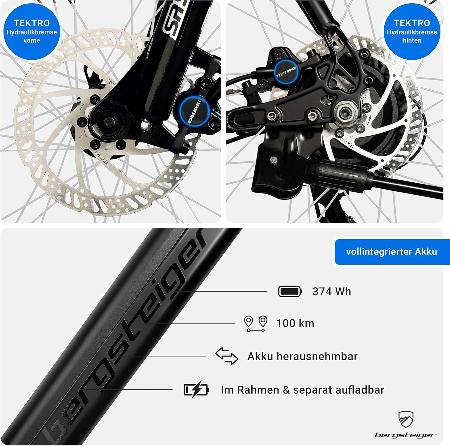 Top-Angebot: Bergsteiger Cannock 26/27.5/29 Inch E-Bike with 250 Watt Motor, Hydraulic Brakes, Aluminium Ebike Mountain Bike Men & Women, Colour Display, Electric Bicycle with Shimano 24 Speed Gears