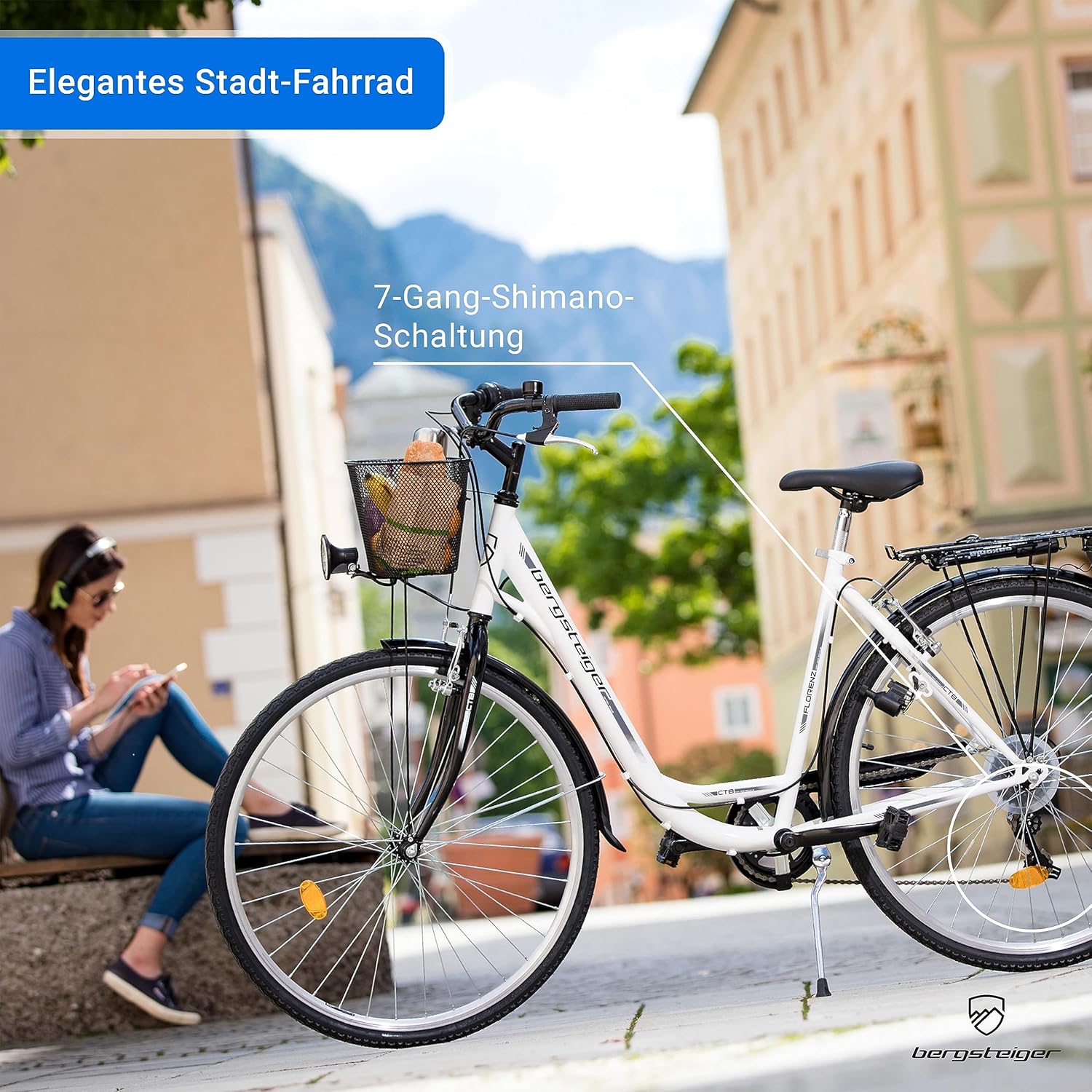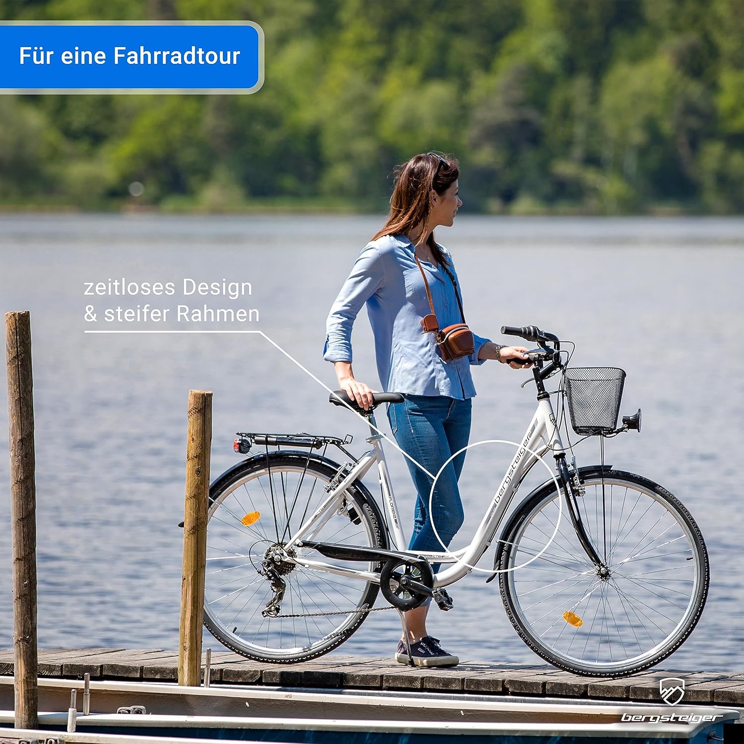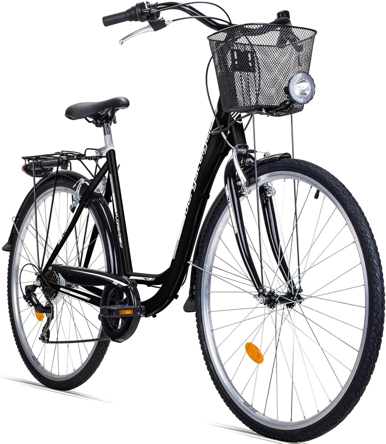 Top-Angebot: Bergsteiger Florenz 28 Inch Women’s Bicycle with Basket, Lighting & Gears, from 160 cm, Women’s Bicycle with Shimano 7 Gears, Retro Women’s Bike
