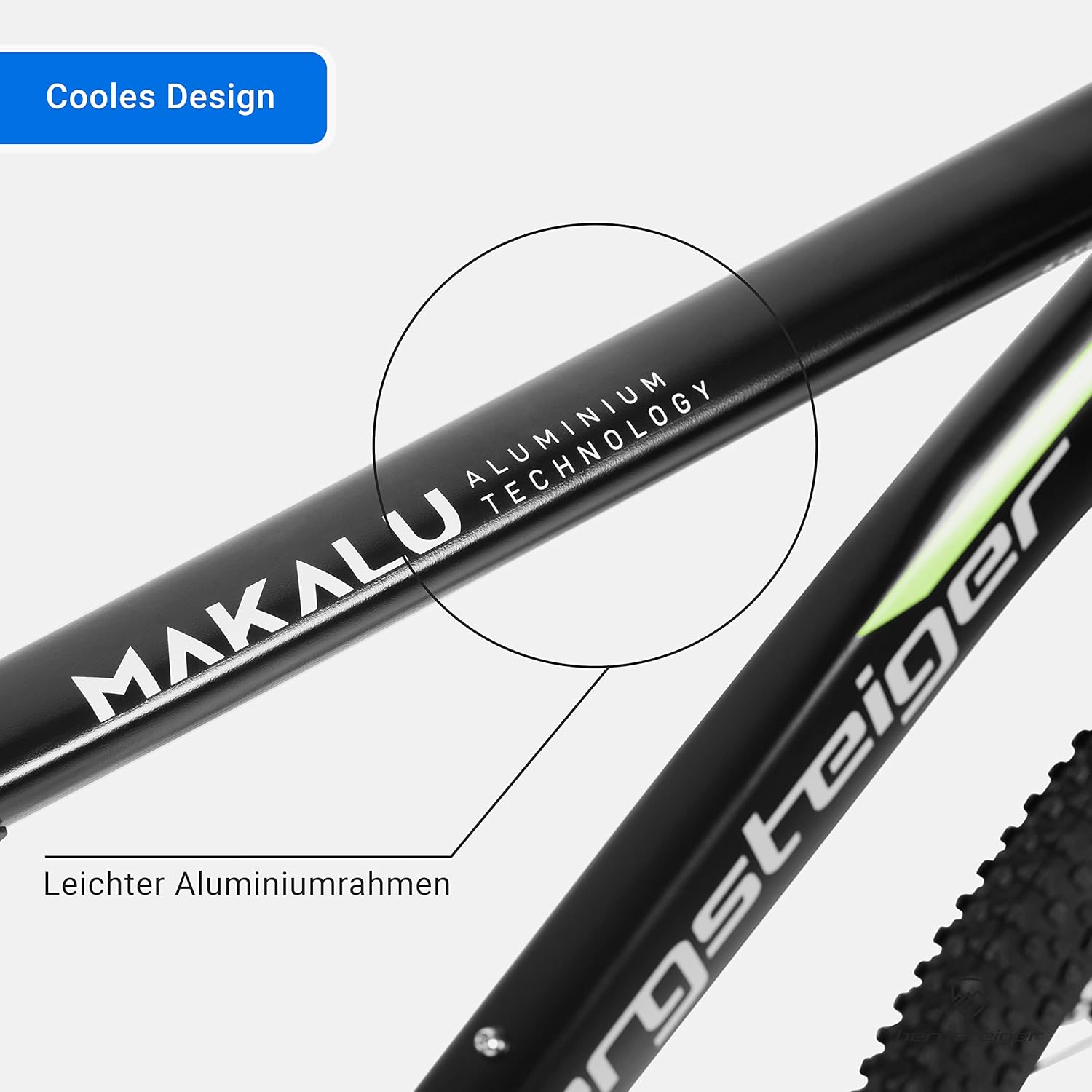 Mit dem Bergsteiger Makalu 26, 29 Inch Aluminium Mountain Bike, Suitable from 150 cm, Disc Brake, 21 Speed Gears, Hardtail, Boys Bicycle & Men’s Bicycle bekommst du Qualität, Komfort und Stil – perfekt für deine nächste Tour.