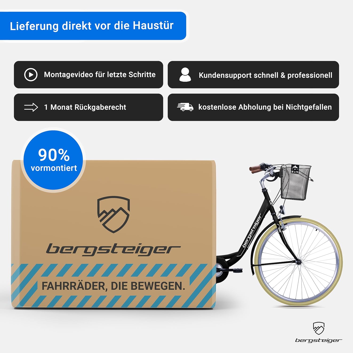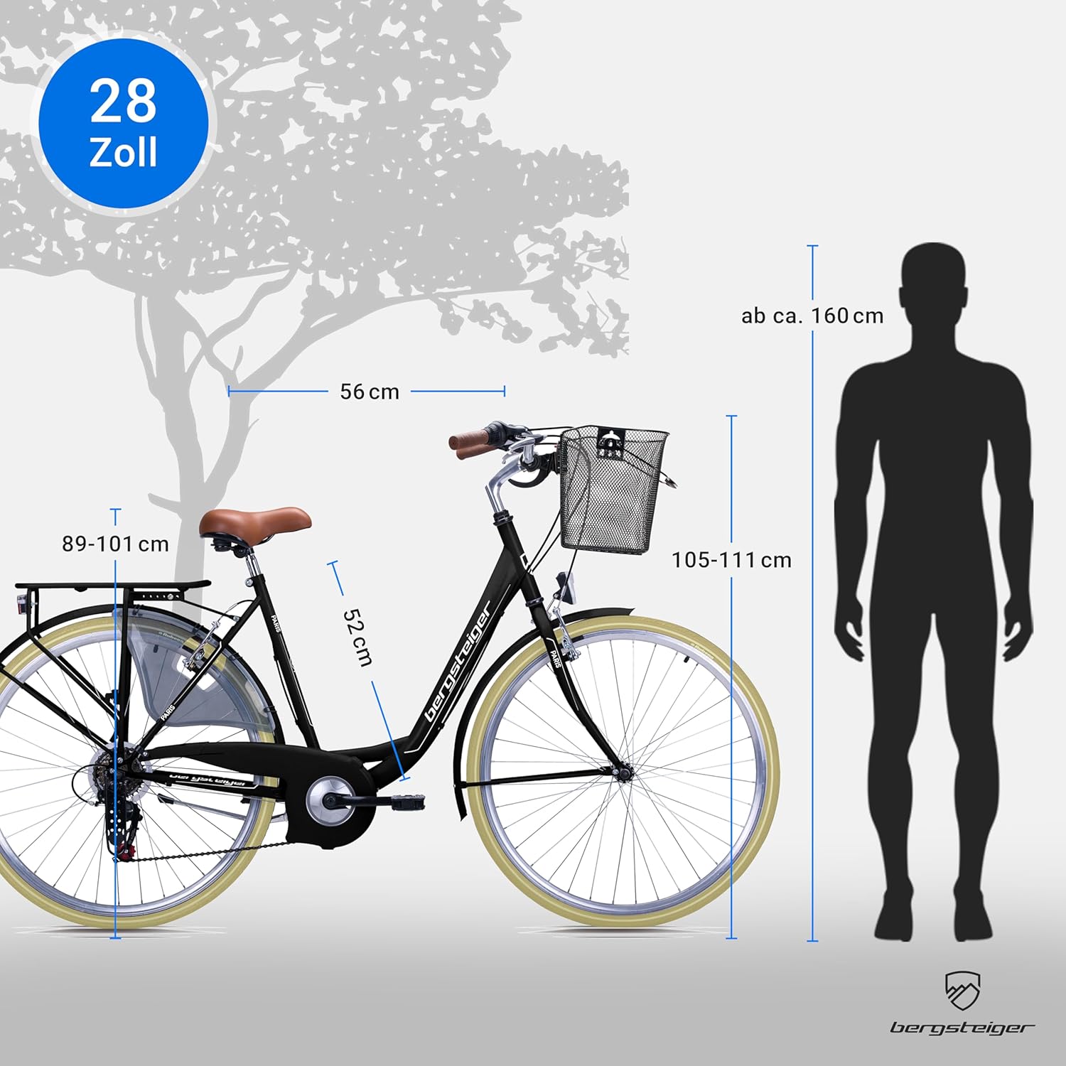 Mit dem Bergsteiger Paris 28 inch Women’s Bicycle from 160 cm with Basket, Bicycle Light, Shimano 6 Speed Gears, Women’s City Bike in a Retro Design bekommst du Qualität, Komfort und Stil – perfekt für deine nächste Tour.