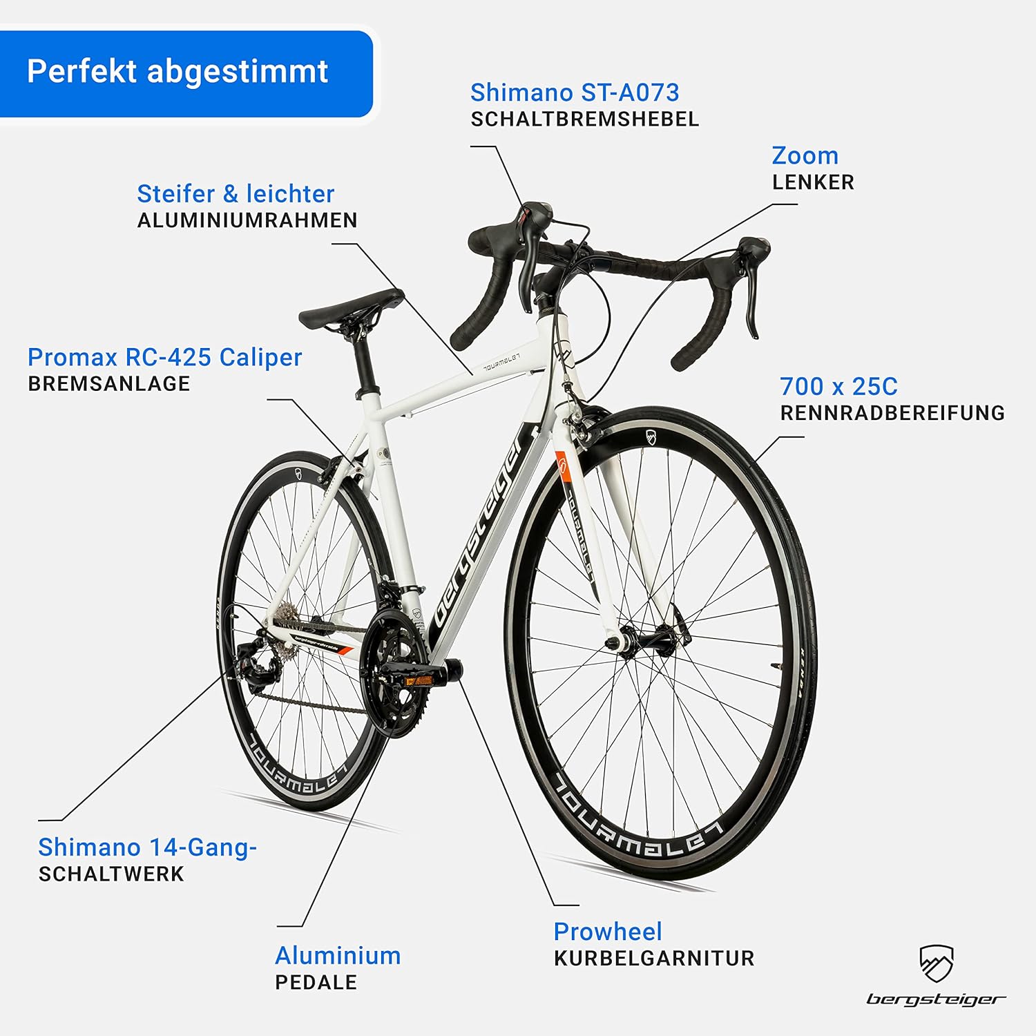 Jetzt entdecken: Bergsteiger Tourmalet 28 Inch Road Bike, Aluminium Gravel Bike with Shimano 14 Speed Gears, Weight Only 11 kg, Gravel Bike Suitable for Men and Women from 170 cm
