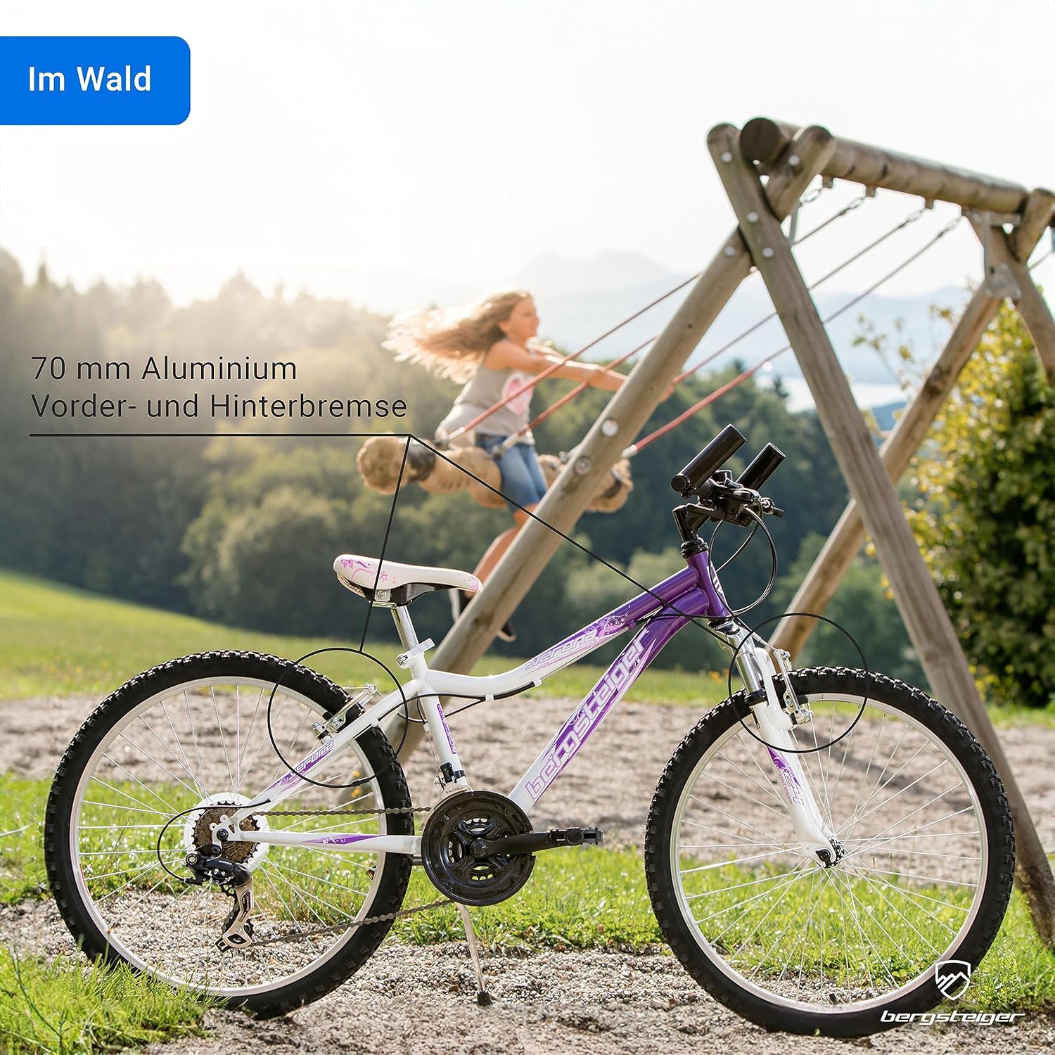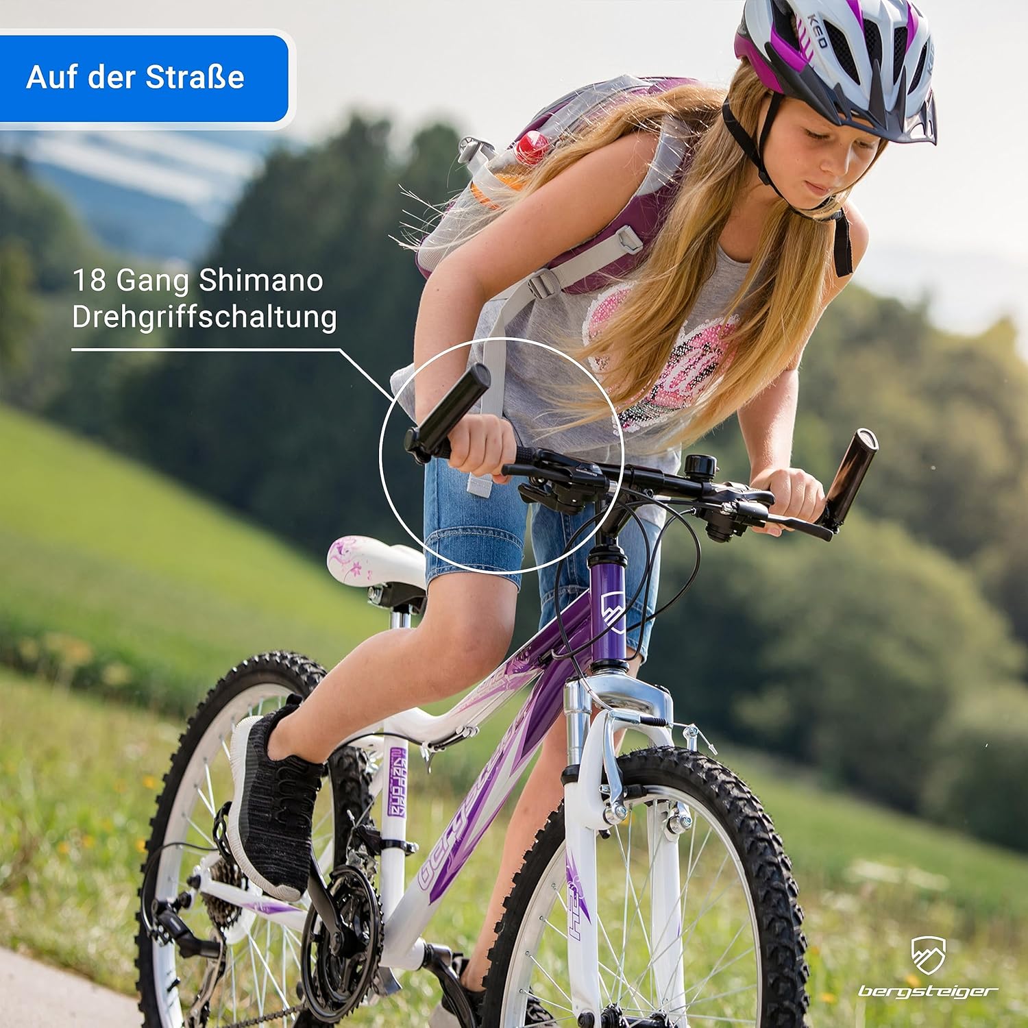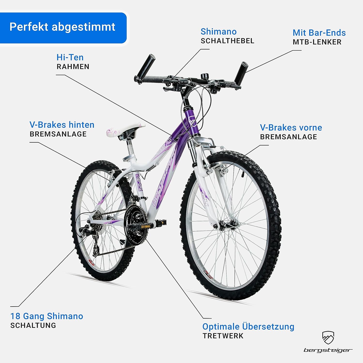 Das Bergsteiger Verona 24 Inch Children’s Bicycle, Suitable for 8, 9, 10, 11 Years Old, Shimano 18-gear shift Mountain Bike with Fork Suspension, Girls Bike ist ideal für Alltagspendler, die ein zuverlässiges Fahrrad suchen.