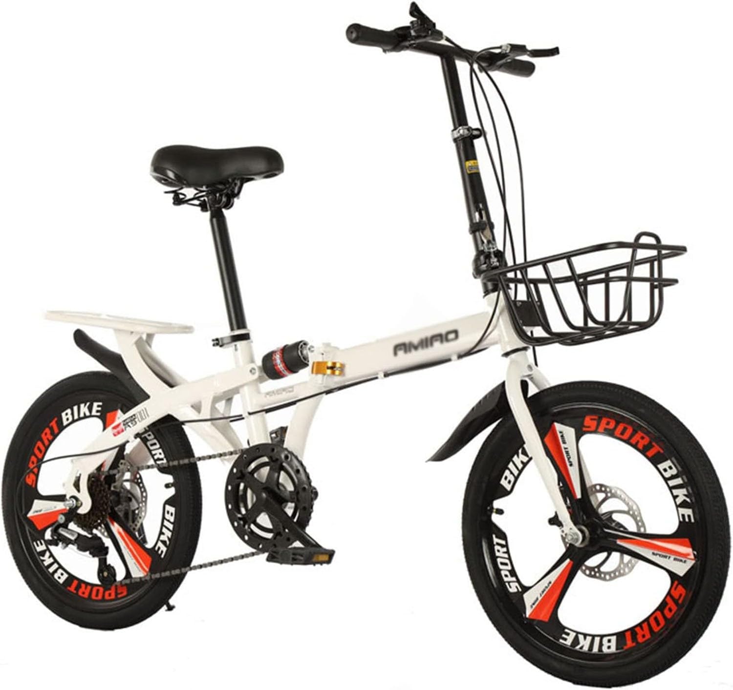 Top-Angebot: Bicycle Folding Bike with 7-Speed Gears, 20 Inch Double Disc Brake, Lightweight Folding City Bike Made of Carbon Steel with Rear Pannier Rack, Front and Rear Mudguards
