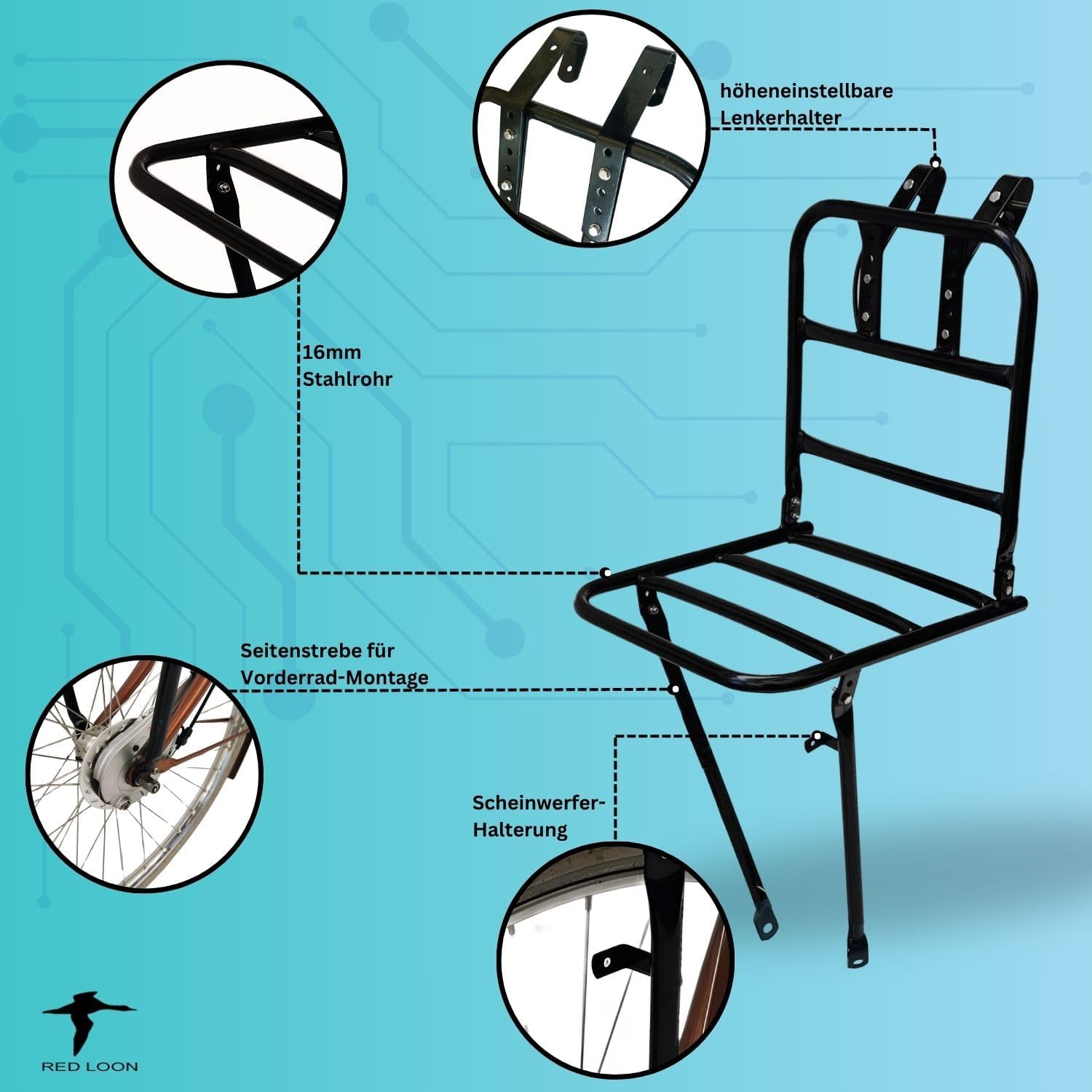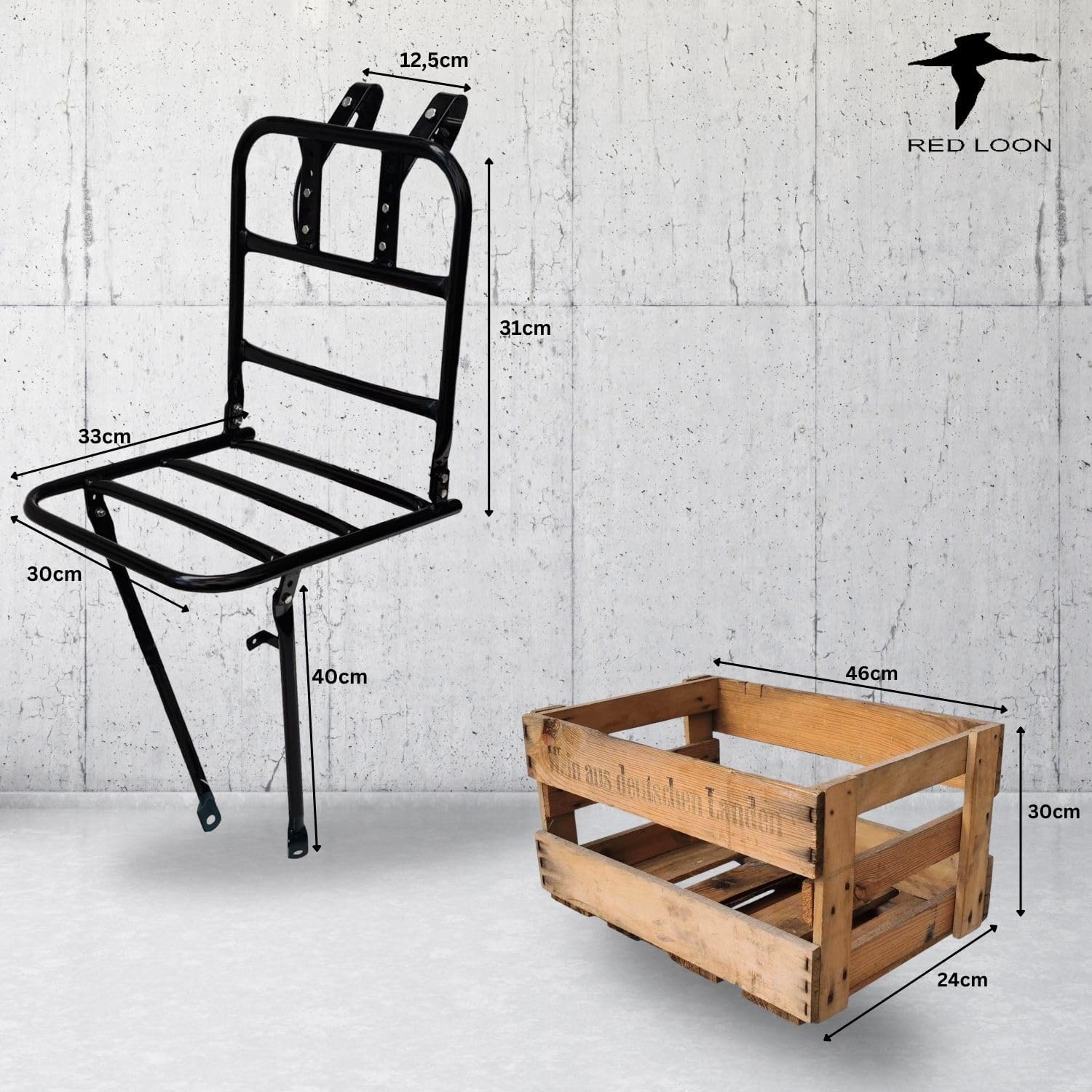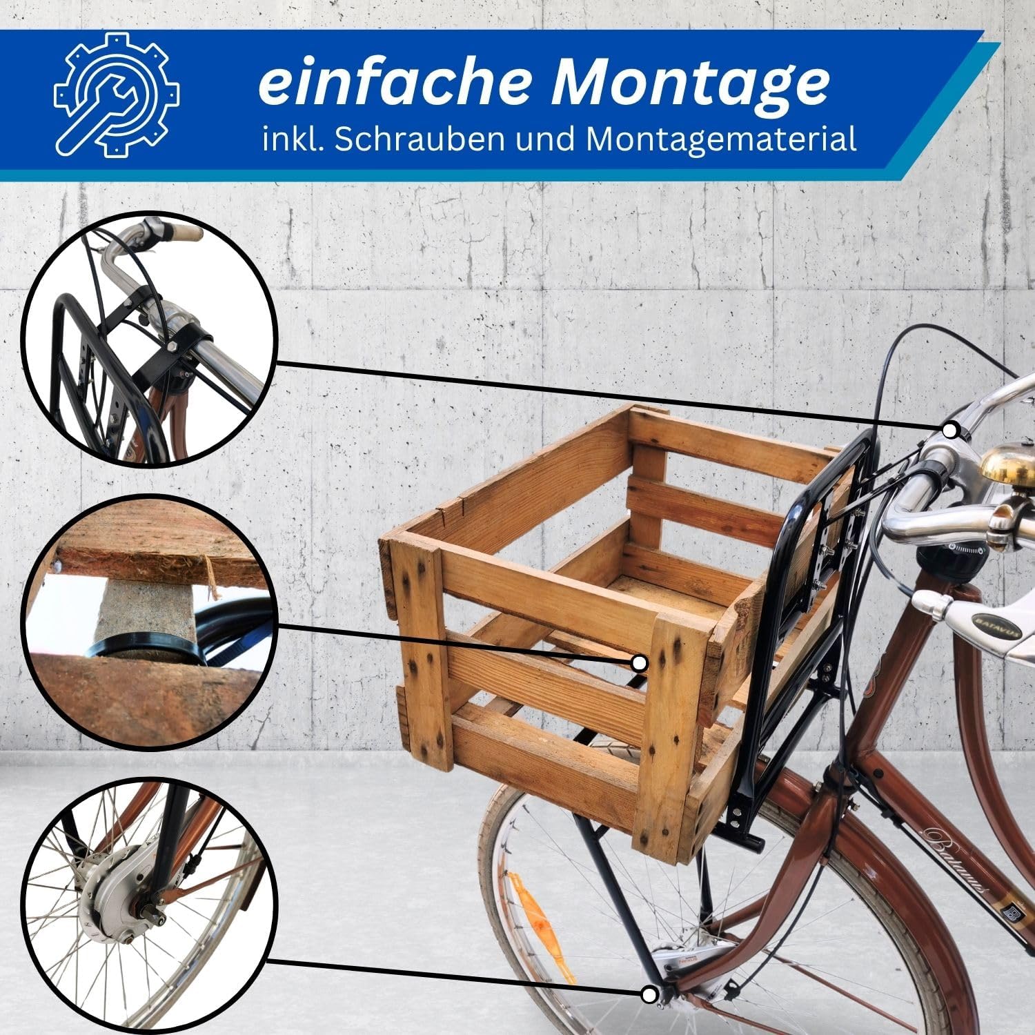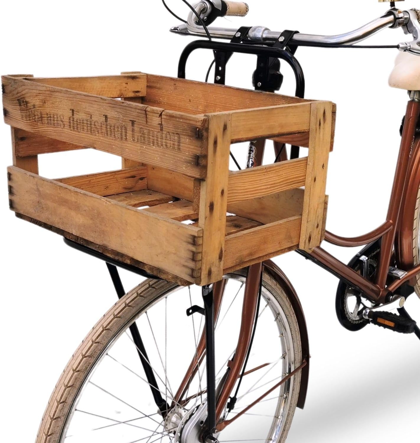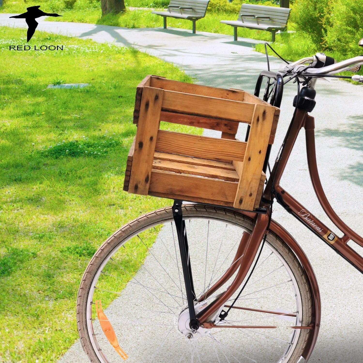 Top-Angebot: Bicycle Front Pannier Rack – Bicycle Pannier Rack Front Wheel – Red Loon Bicycle Front Carrier – Steel Front Loader – Front Pannier Rack – Dutch Bike City Bike – Includes Wooden Wine Box