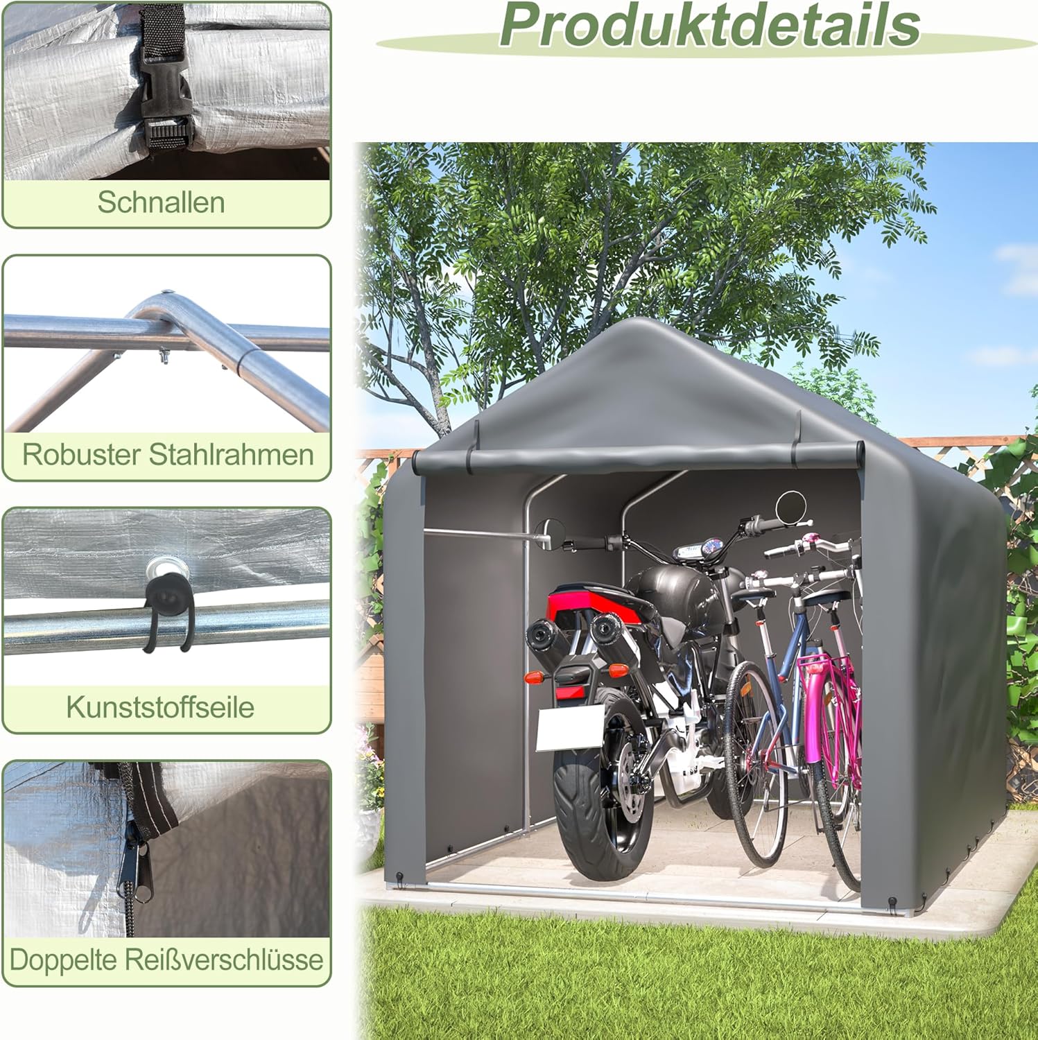 Top-Angebot: Bicycle Garage 160 x 220 x 165 cm, Waterproof Tool Shed Made of PE Material, Mobile Garage Tent with Rolling Gate, Sturdy Steel Frame, Weatherproof, Ideal for Bicycles, E-Bikes, Scooters and Garden