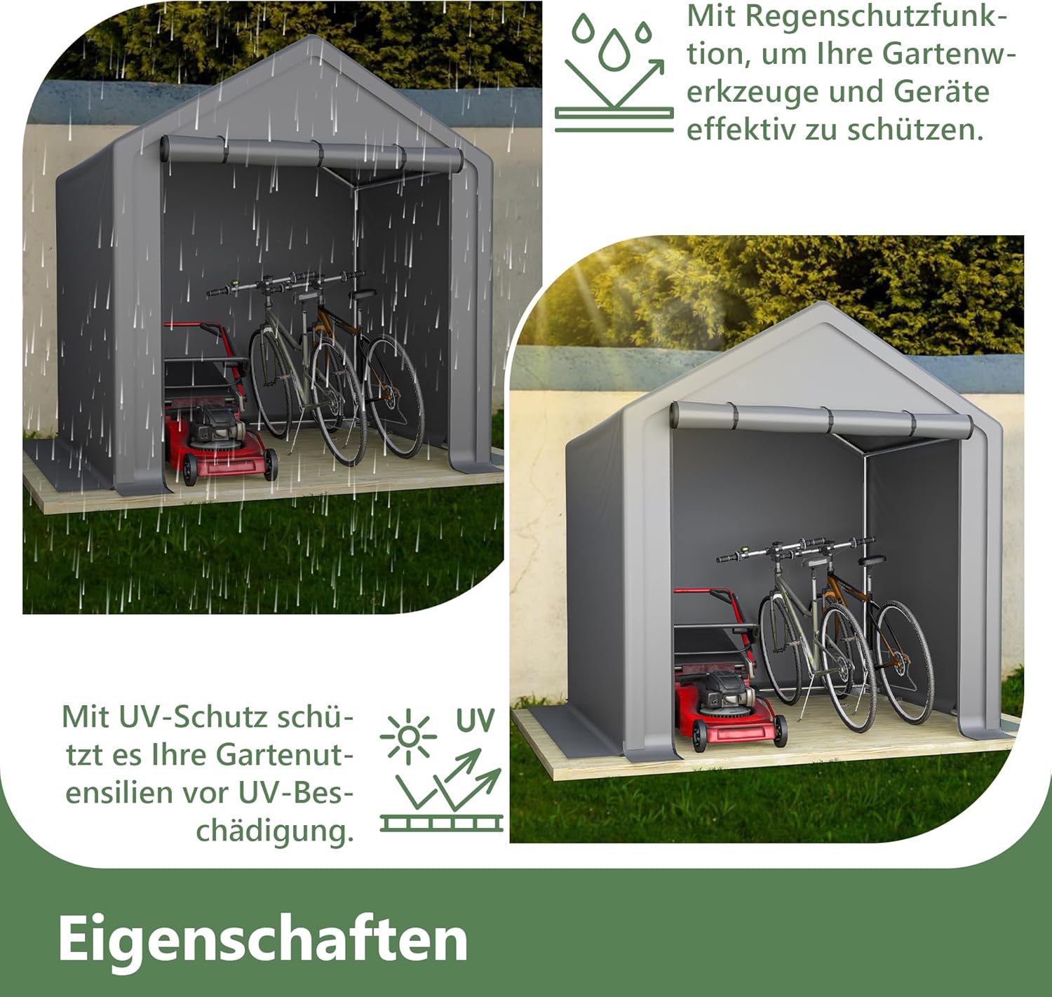 Das Bicycle Garage 190 x 170 x 200 cm, Waterproof Tool Shed Made of PE Material, Mobile Garage Tent with Rolling Gate, Sturdy Steel Frame, Weatherproof, Ideal for Bicycles, E-Bikes, Scooters and Garden ist ideal für Alltagspendler, die ein zuverlässiges Fahrrad suchen.