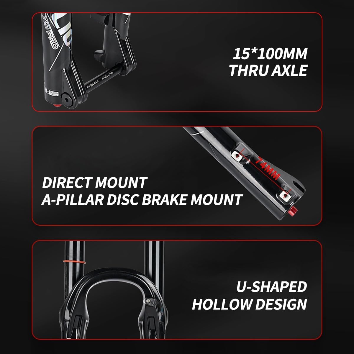 Top-Angebot: Bicycle Suspension Fork 26/27.5/29 Inch Mountain Bikes Air Forks 1-1/2 Inch Conical Bicycle Forks Suspension Travel 160 mm 15 x 100 mm Thru Axle Disc Brake Front Fork Tension Adjustment (Tapered