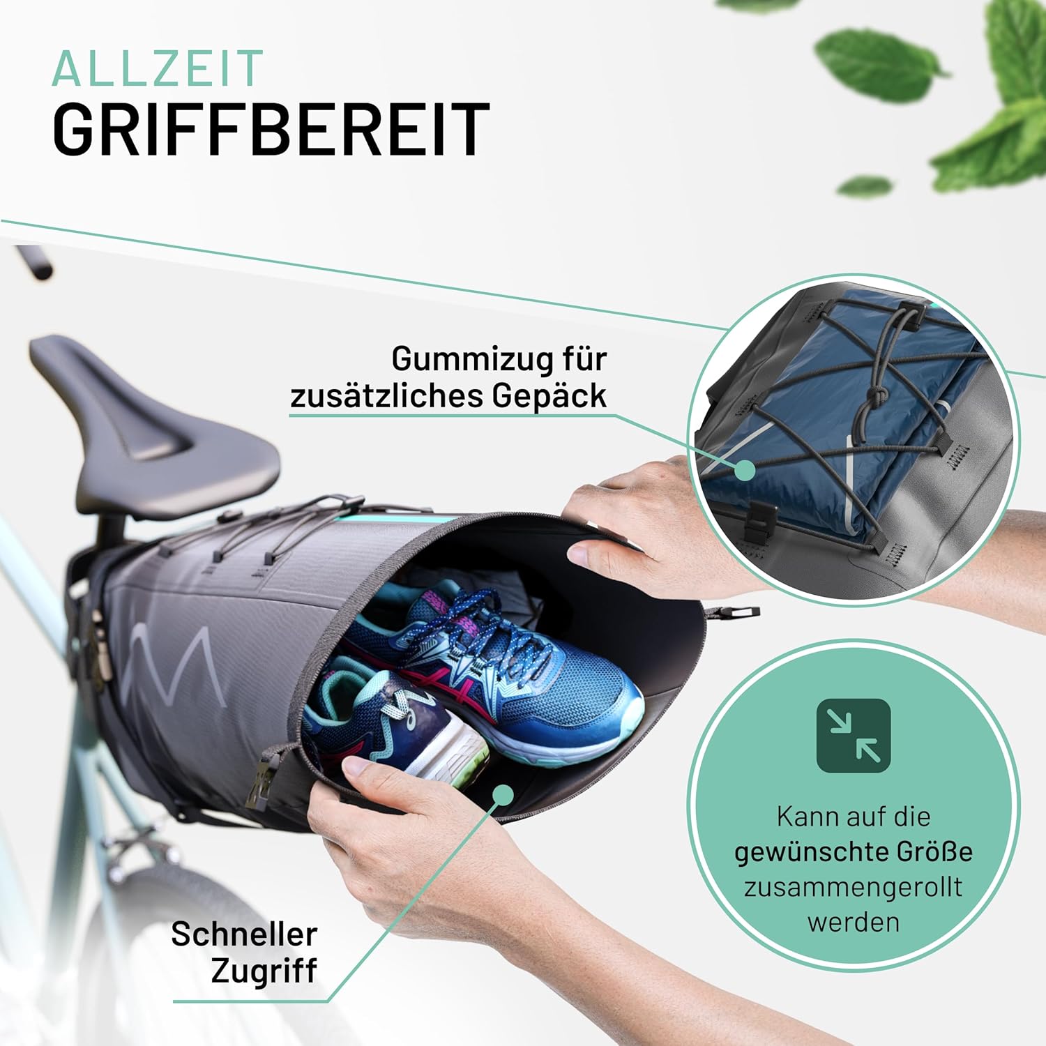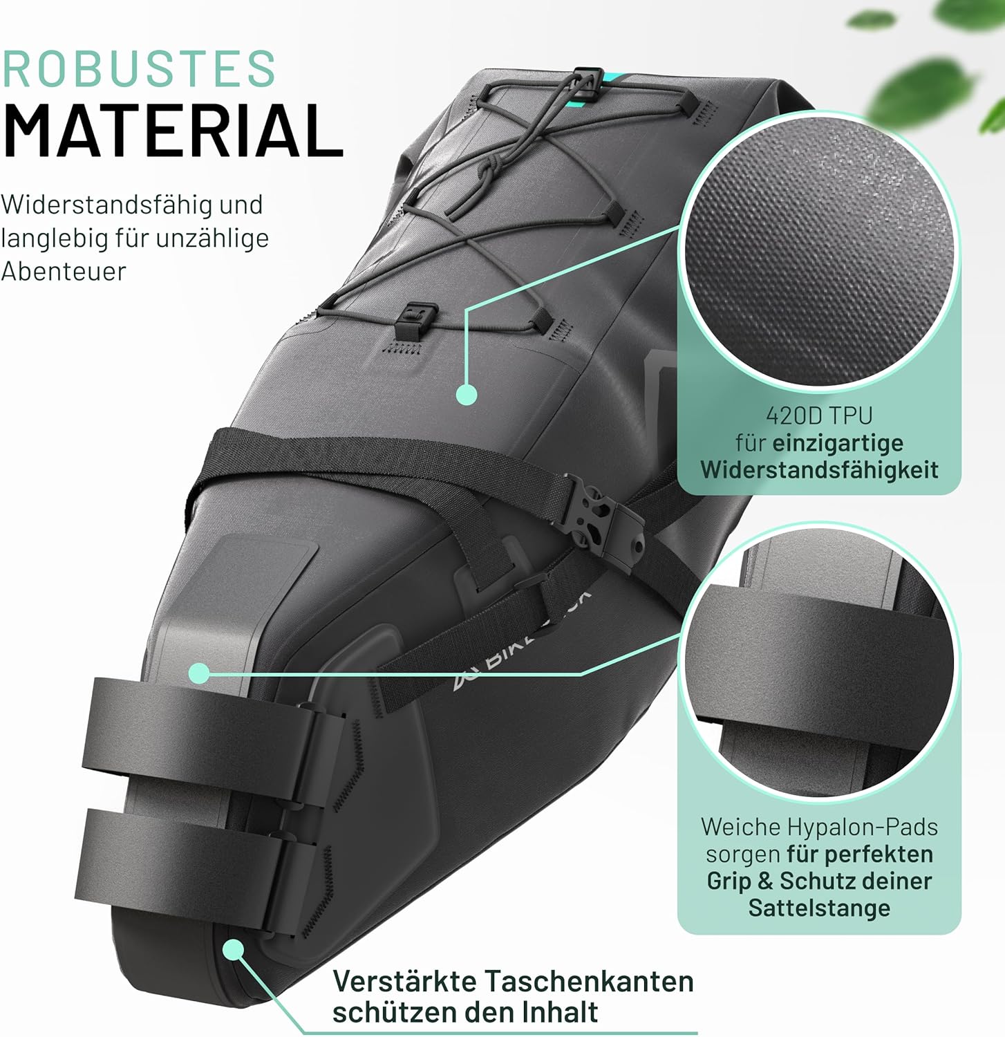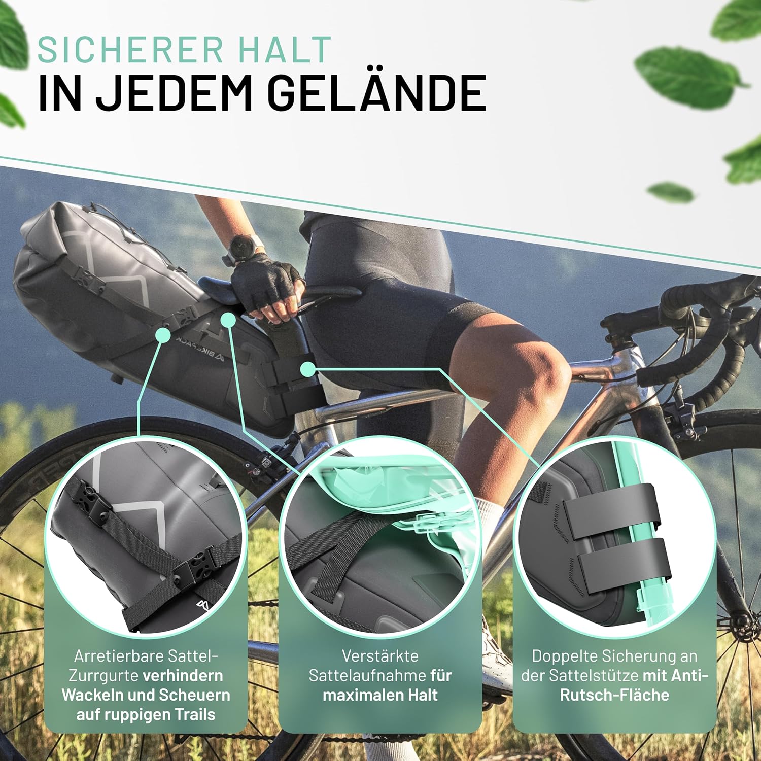 Mit dem BIKEPACK Saddle Bags for Bicycle – Bikepacking Bags – Bicycle Bag Saddle – Gravel Bike Road Bike Saddle Bag 15L – Bicycle Bag without Pannier Rack – Gravel Bike Accessories – 100% Waterproof bekommst du Qualität, Komfort und Stil – perfekt für deine nächste Tour.