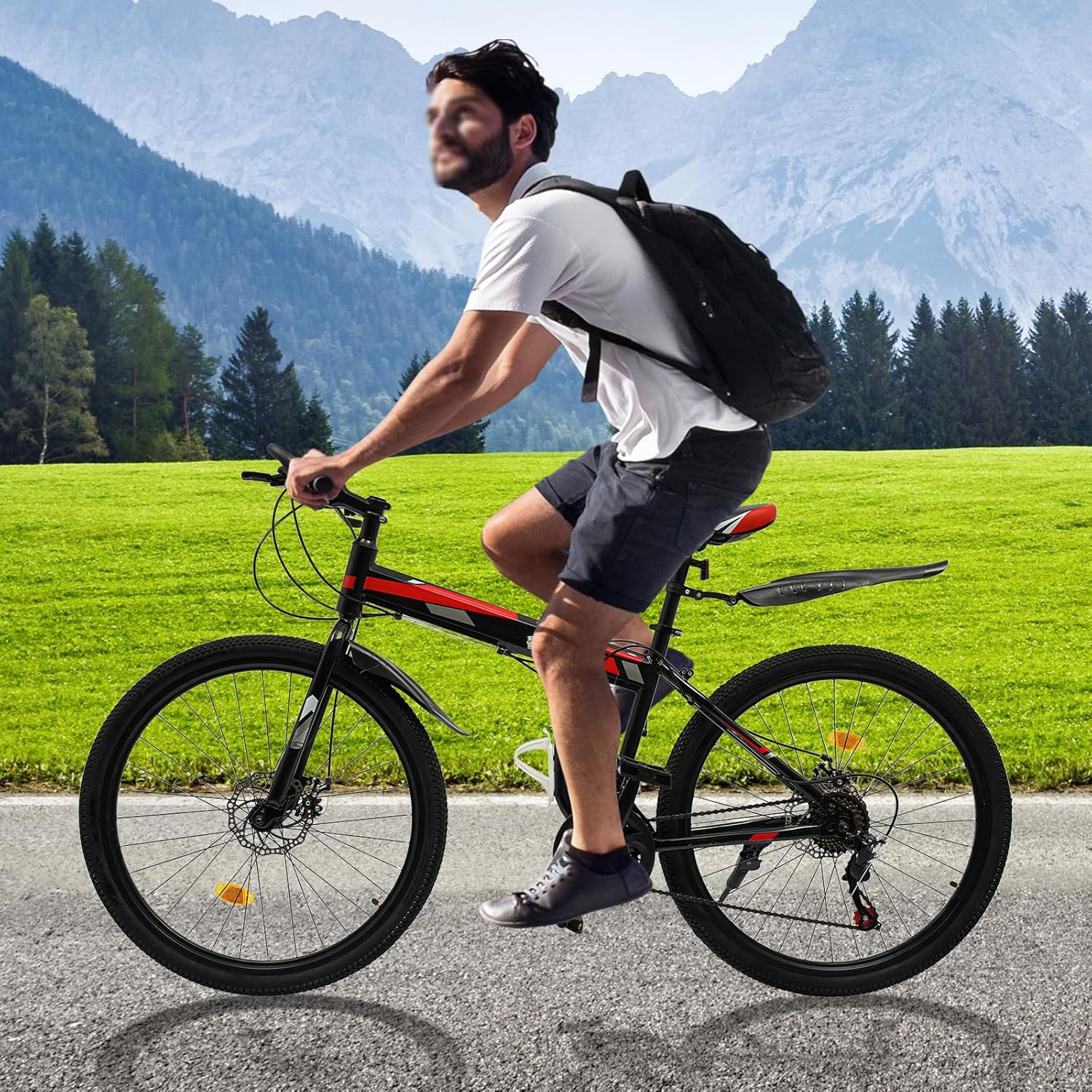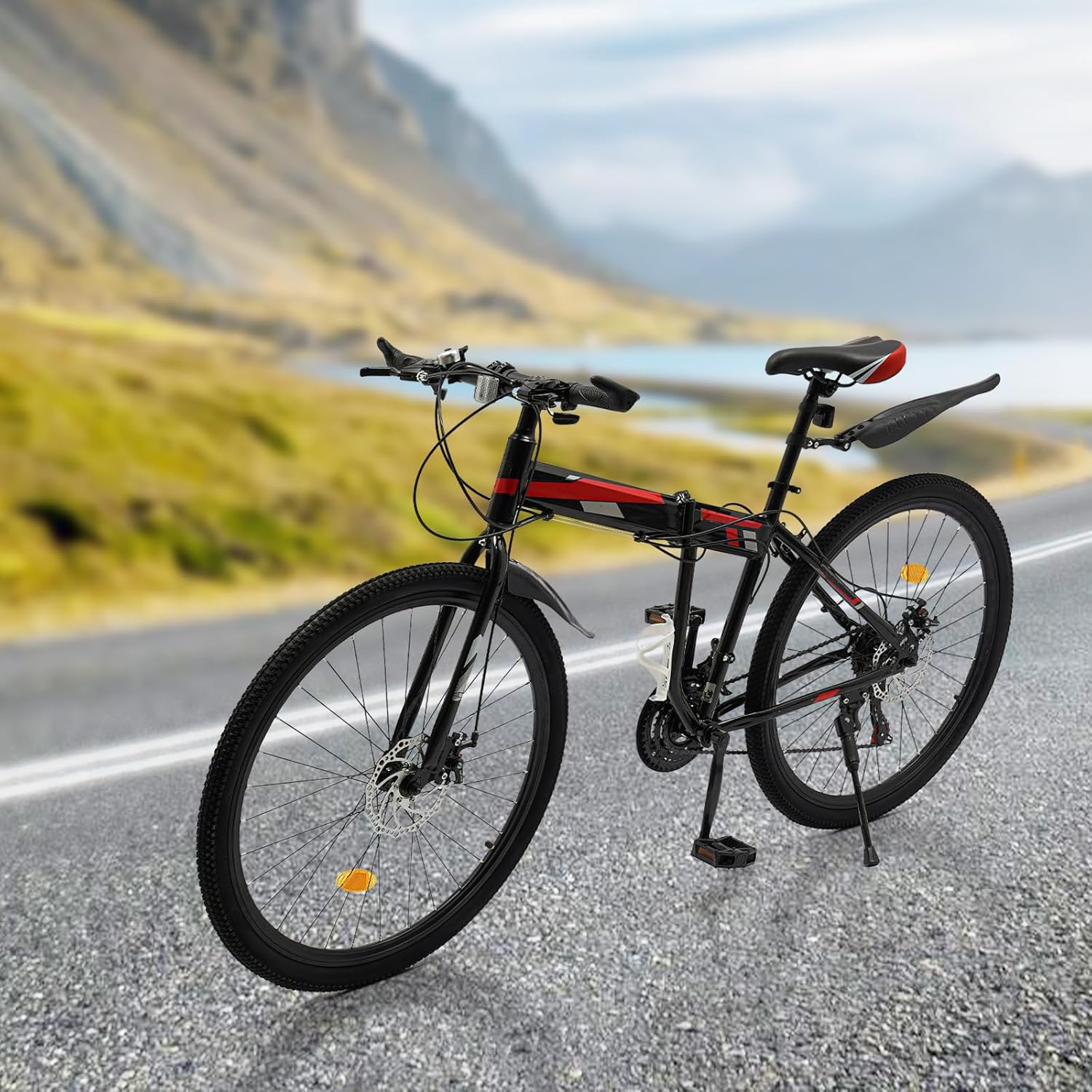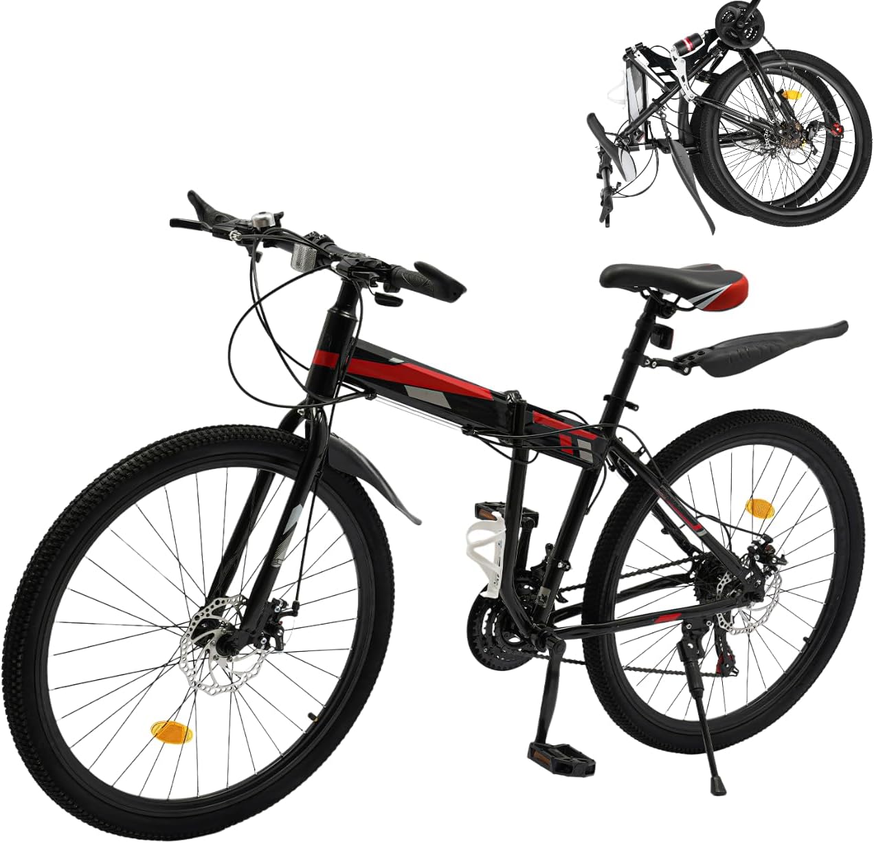 Jetzt entdecken: biusgiyeny Folding Bike Mountain Bike Disc Brake Bicycle 26 Inch 21 Speed MTB Black + White Mountain Bike Folding Bicycle Adult Folding Bike