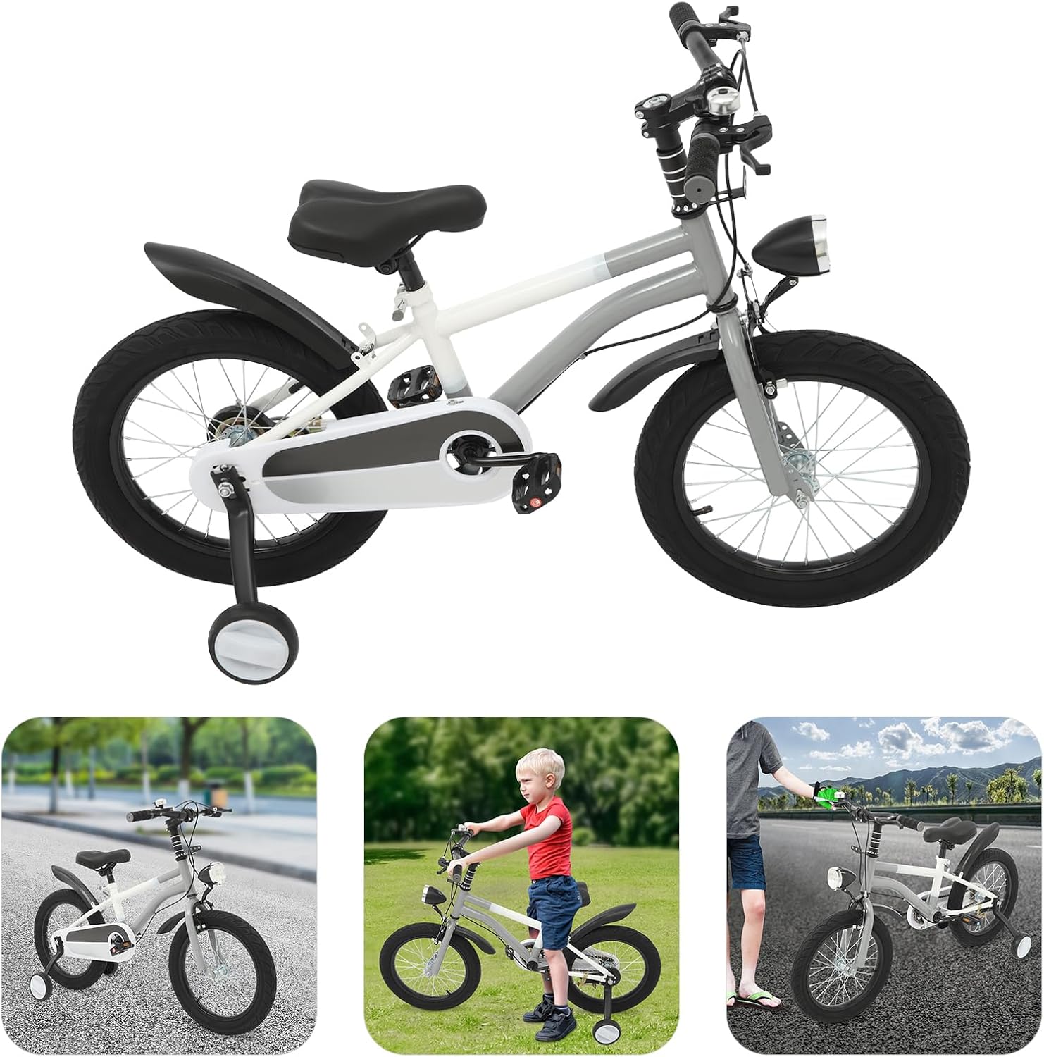 Top-Angebot: BJTDLLX Children’s Bicycle 16 Inch Children’s Bicycle for 5-8 Years Girls and Boys, Height Adjustable Children’s Bicycle with Light and Stabilisers, 3 Wheel Bicycle Load Capacity 60 kg (Grey)