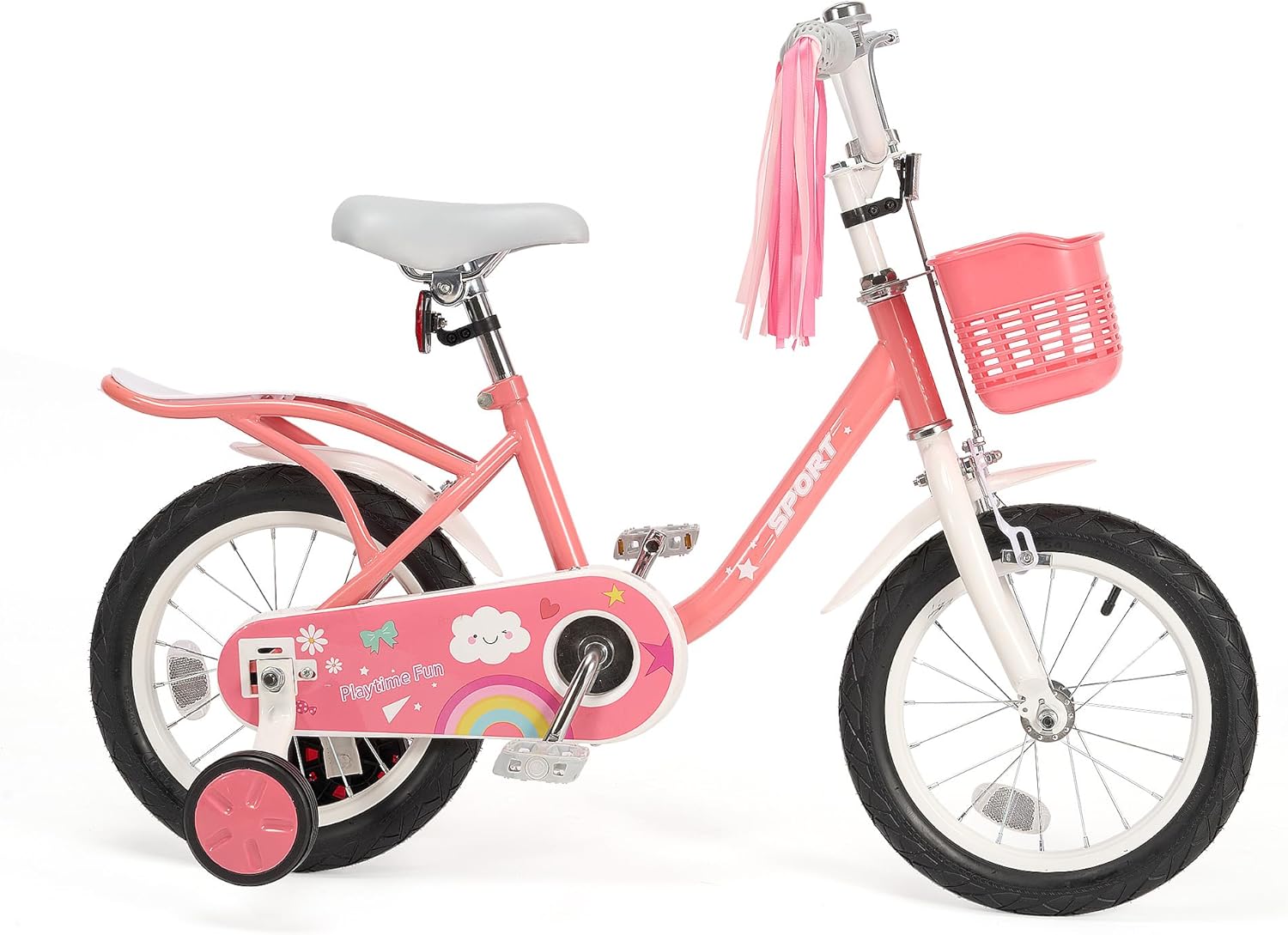 Top-Angebot: BODIOO 12 and 14 Zoll Kinderfahrrad Fahrrad für Mädchenmit und Jungen Stützrädern & verstellbarem Sattelfür Spielrad mit Korb & Klingel Fahrer von 94 bis 107 cm-Rosa