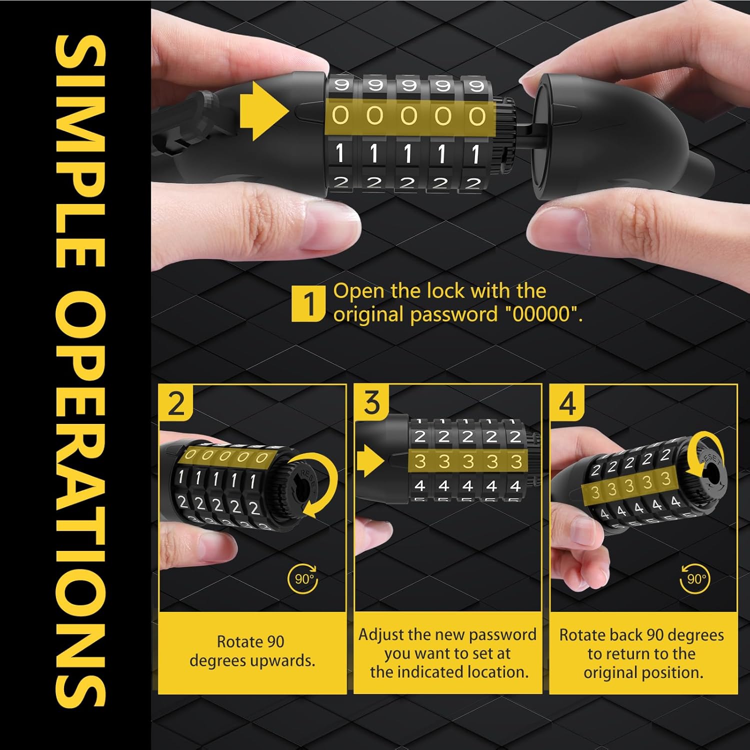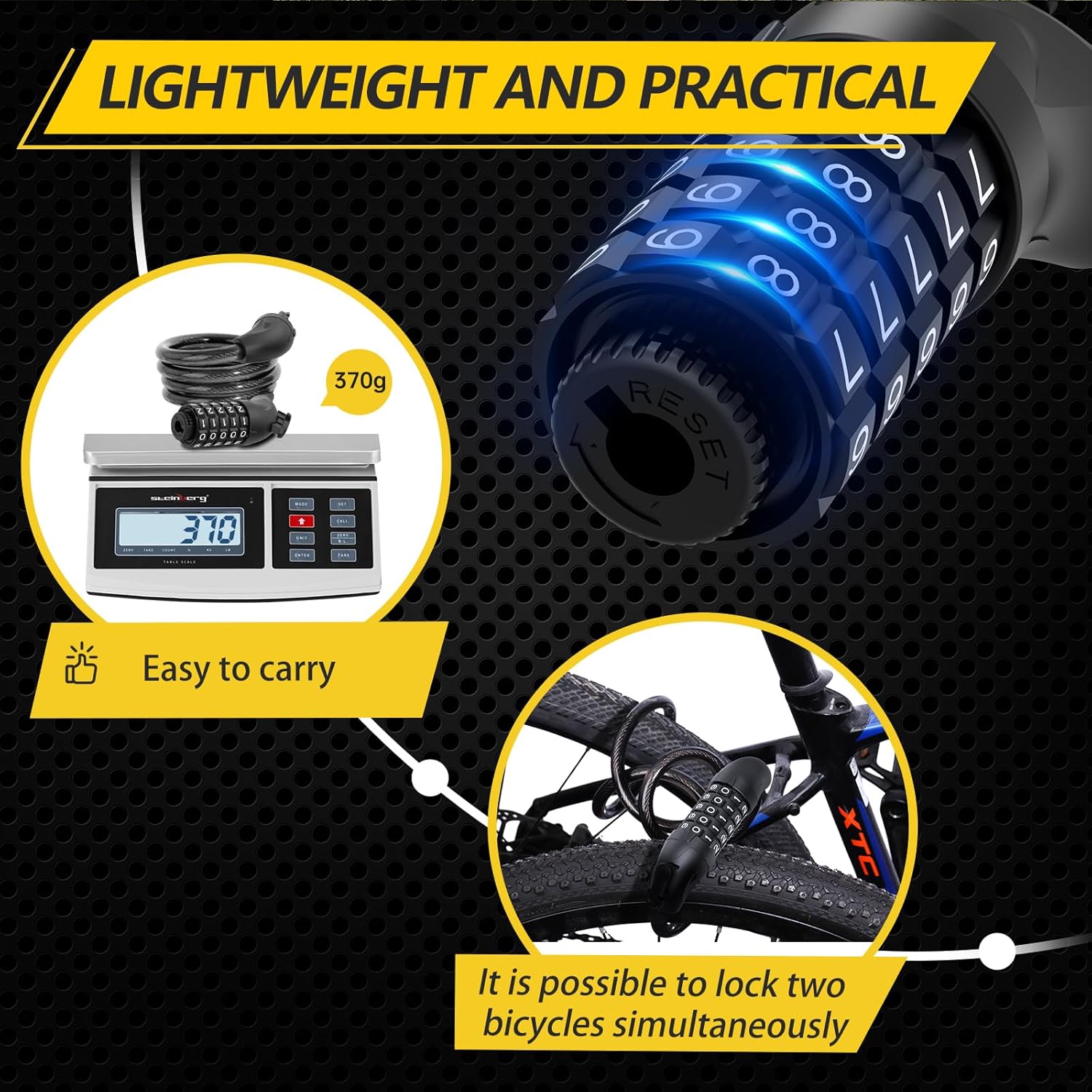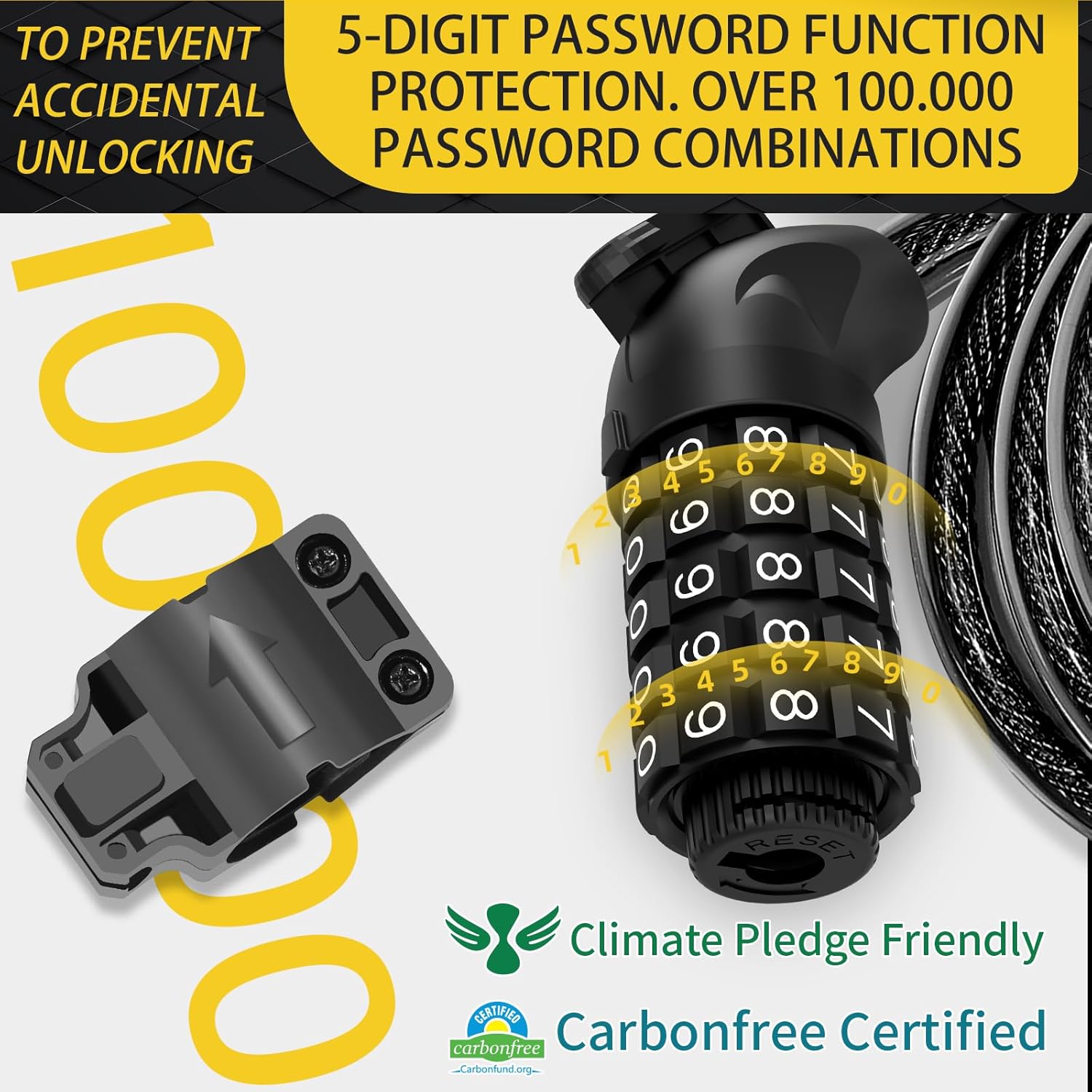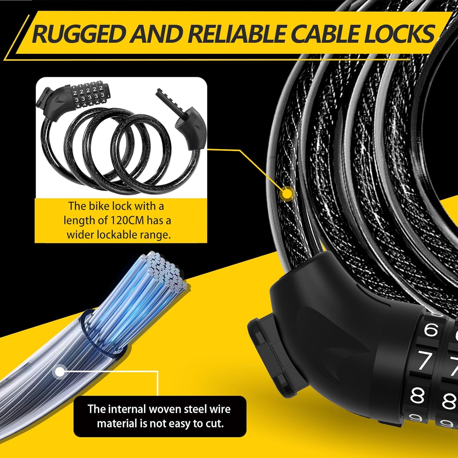 Top-Angebot: BOLEi Bicycle Lock with Combination Code 12 mm/120 cm, Anti-Theft Bicycle Cable Lock with 5-Digit Code Combination, Waterproof Combination Lock Cable for Bicycle, E-Bike, Pram, Ladders (Black)
