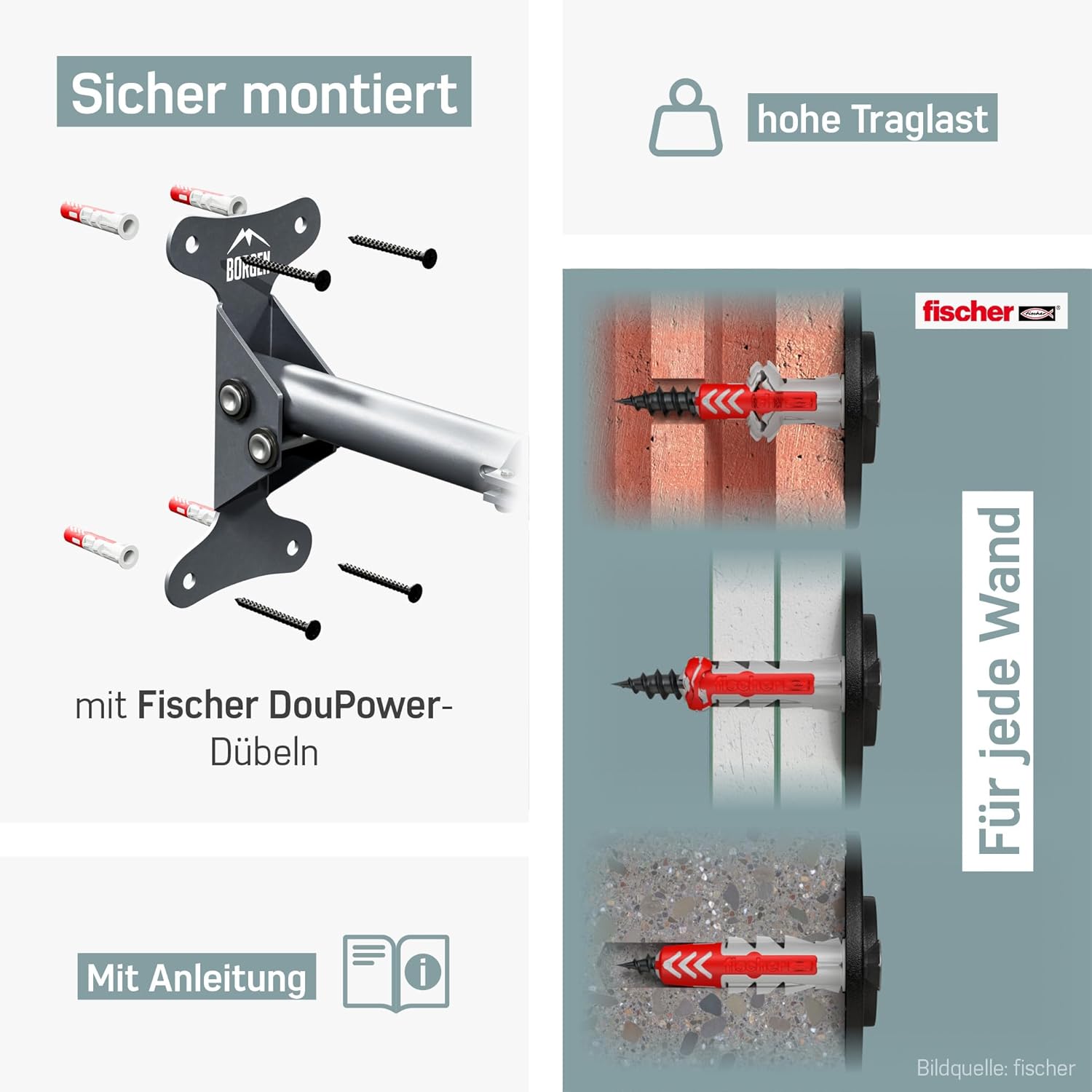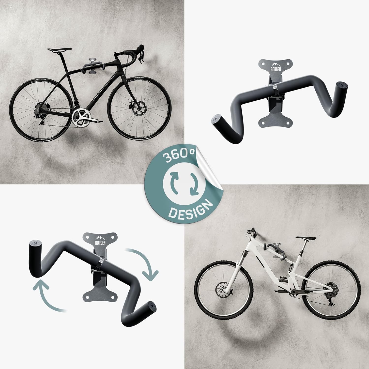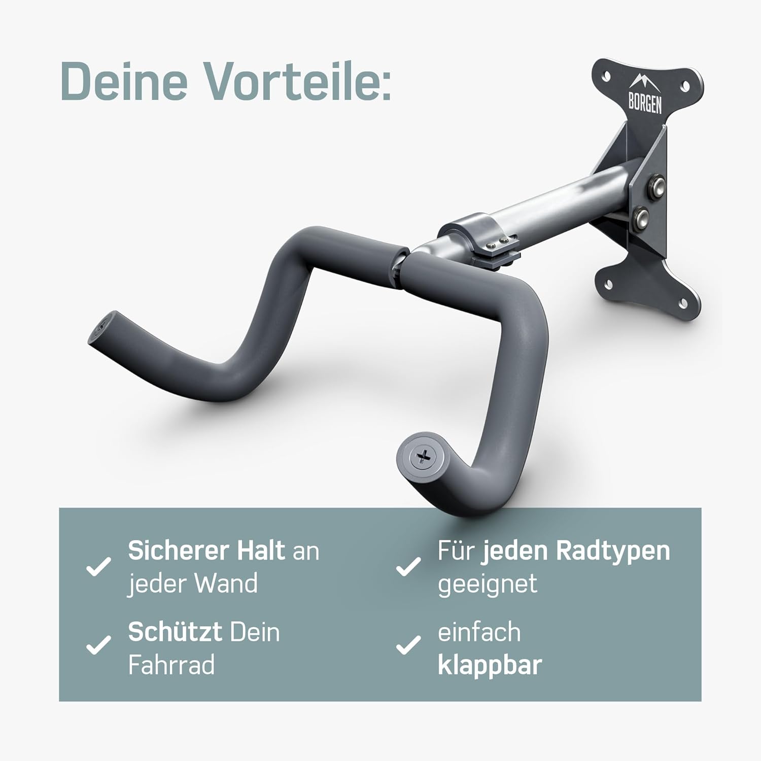 Jetzt entdecken: Borgen Foldable Bicycle Wall Mount – Bicycle Mount Wall up to 20 kg Load Capacity – Angle and Wall Distance Adjustable – Extra Soft Padding – Bicycle Suspension Wall for MTB, Road Bike, E Bike