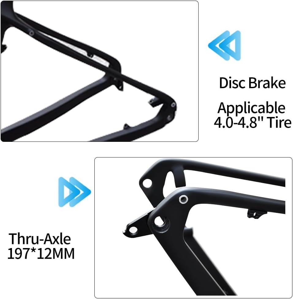 Top-Angebot: BSFHQS 16/18 Inch Mountain Bike Frame 26 4.0 Tyre Fatbike Frame Carbon Fibre Hardtail Frame All Terrain Bicycle Disc Brake Frame Thru Axle F135 x 15 mm R197 x 12 mm (26 x 18 Inches)