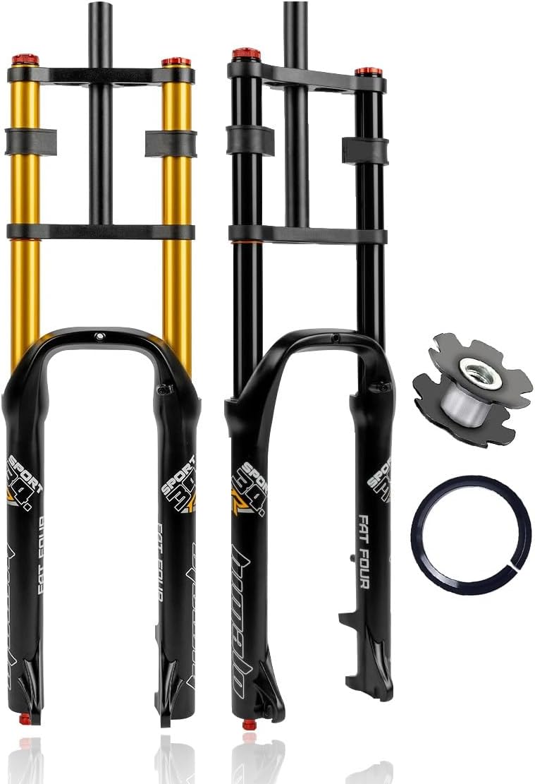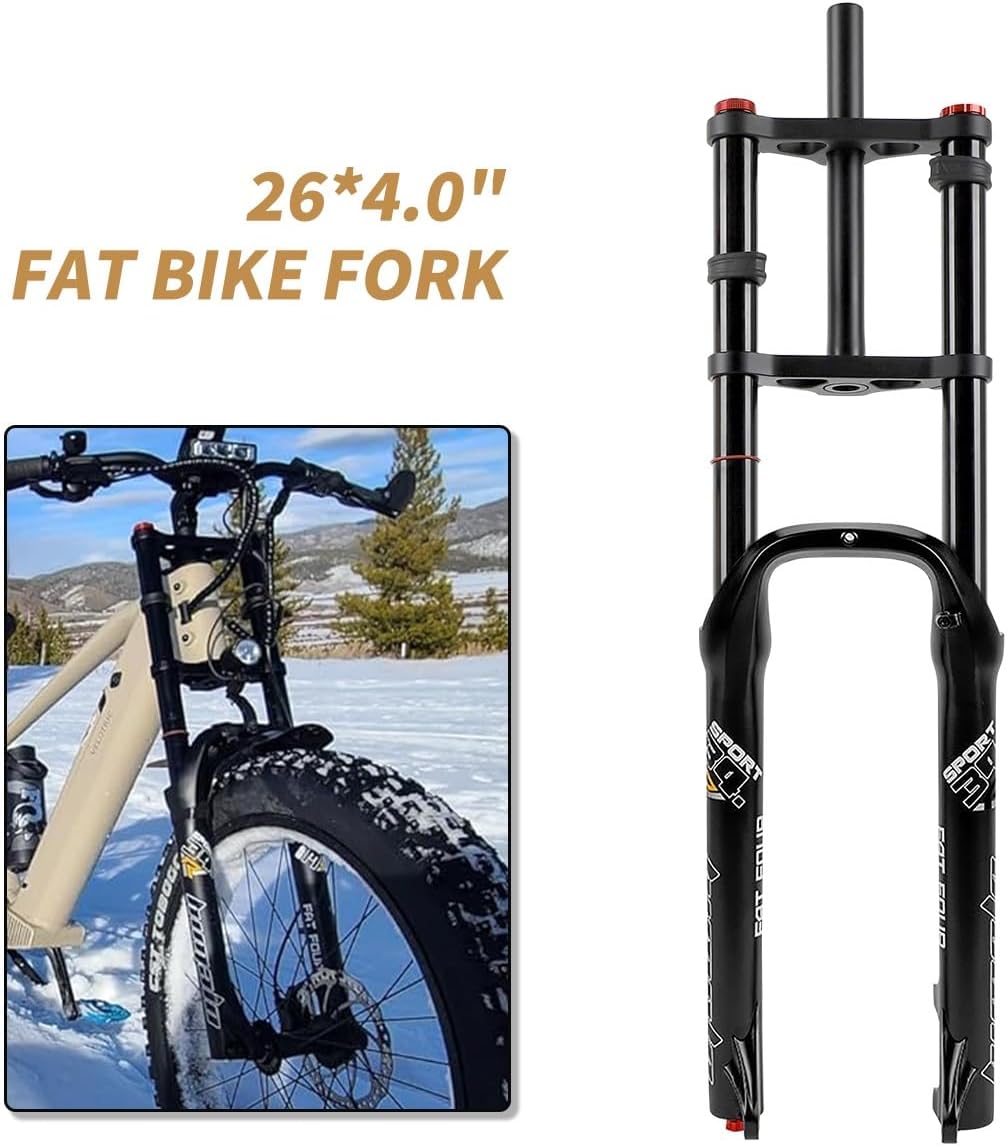 Jetzt entdecken: BSFHQS 26 Inch Fat Bike Suspension Fork Suspension Travel 190 mm 4.0 Inch Tyre Fat Fork 1-1/8 Inch Air Fork Pull Level Adjustment Disc Brake 9 mm QR Bicycle Front Wheel Fork for Snow Beach E-Bike XC